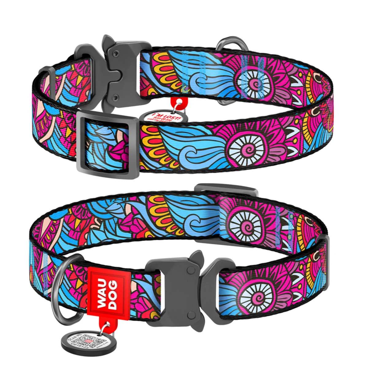 Ошейник для собак нейлоновый WAUDOG Nylon c QR паспортом, рисунок "Лето", металлическая пряжка-фастекс, Ш 25 мм, Дл 31-49 см