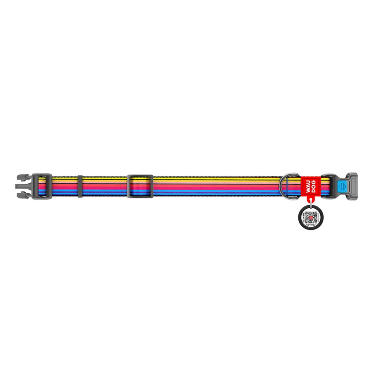 Ошейник для собак нейлоновый WAUDOG Nylon c QR паспортом, рисунок "Линия 1", пластиковый фастекс, Ш 25 мм, Дл 35-58 см
