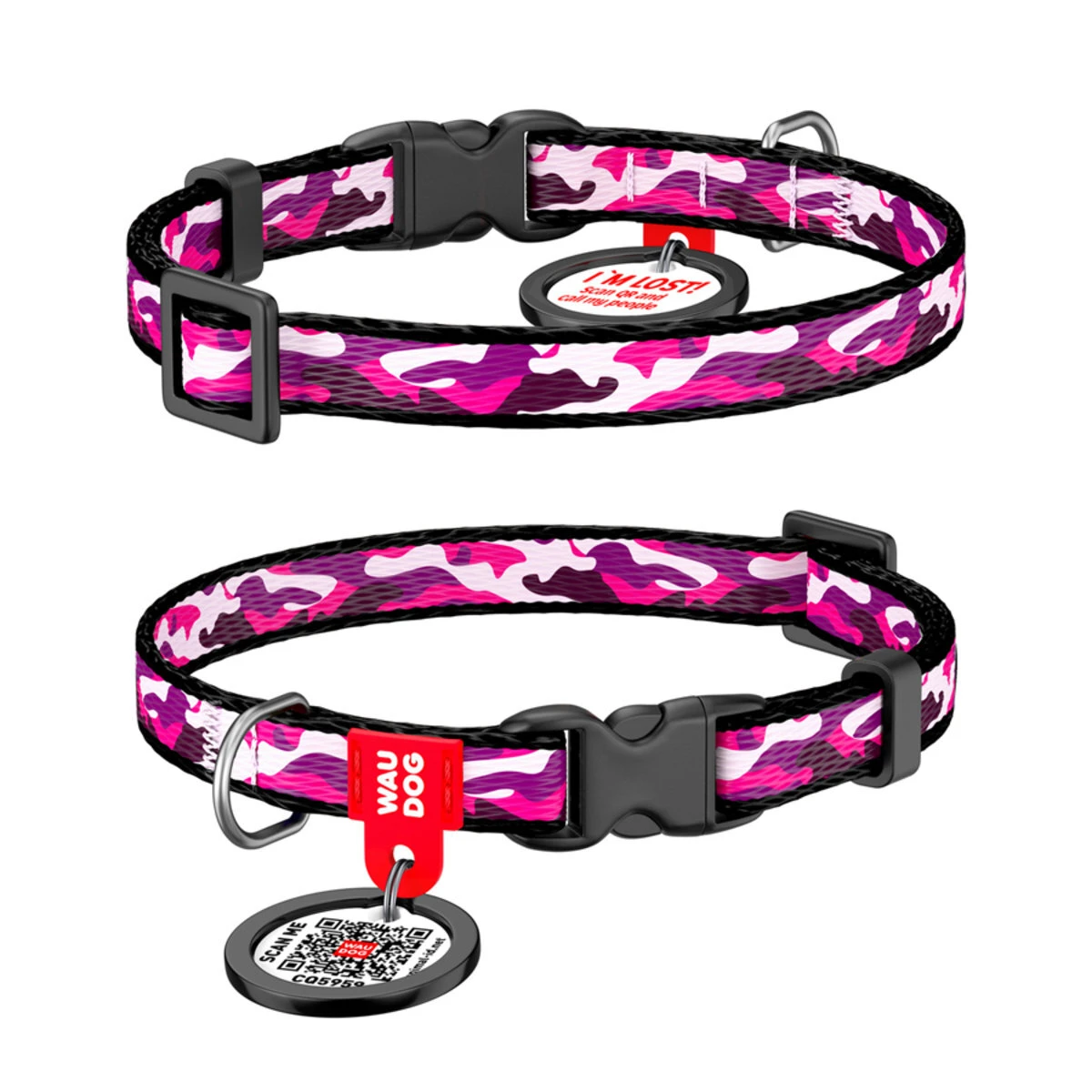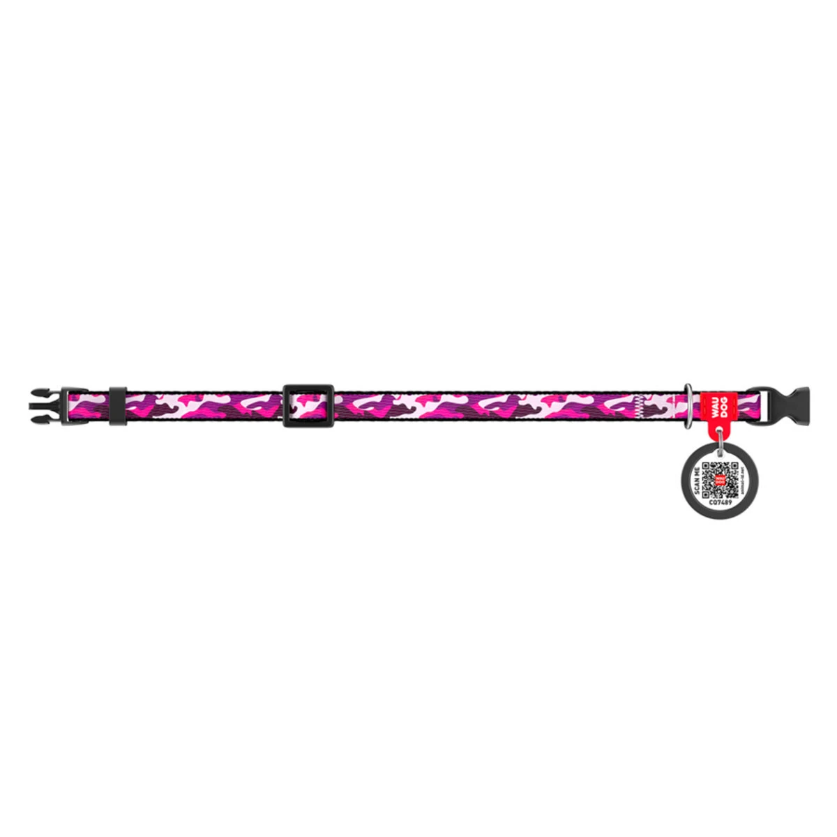 Ошейник для собак нейлоновый WAUDOG Nylon c QR паспортом, рисунок "Розовый камо", пластиковый фастекс, Ш 10 мм, Дл 20-30 см