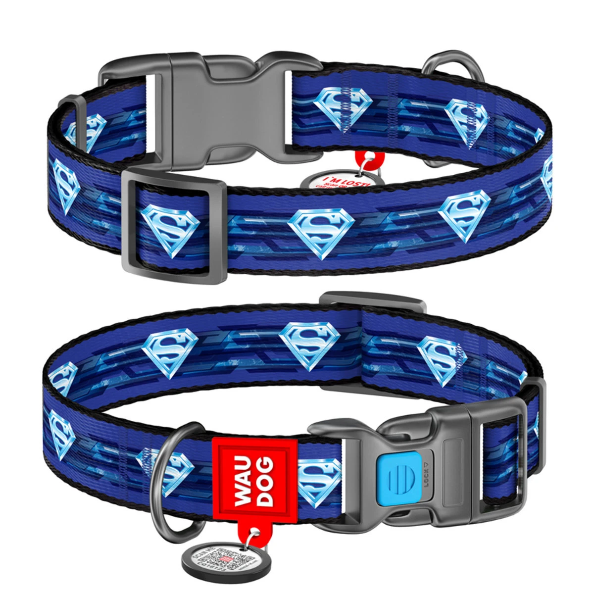 Ошейник для собак нейлоновый WAUDOG Nylon c QR паспортом, рисунок "Супермен 1", пластиковый фастекс, Ш 25 мм, Дл 35-58 см