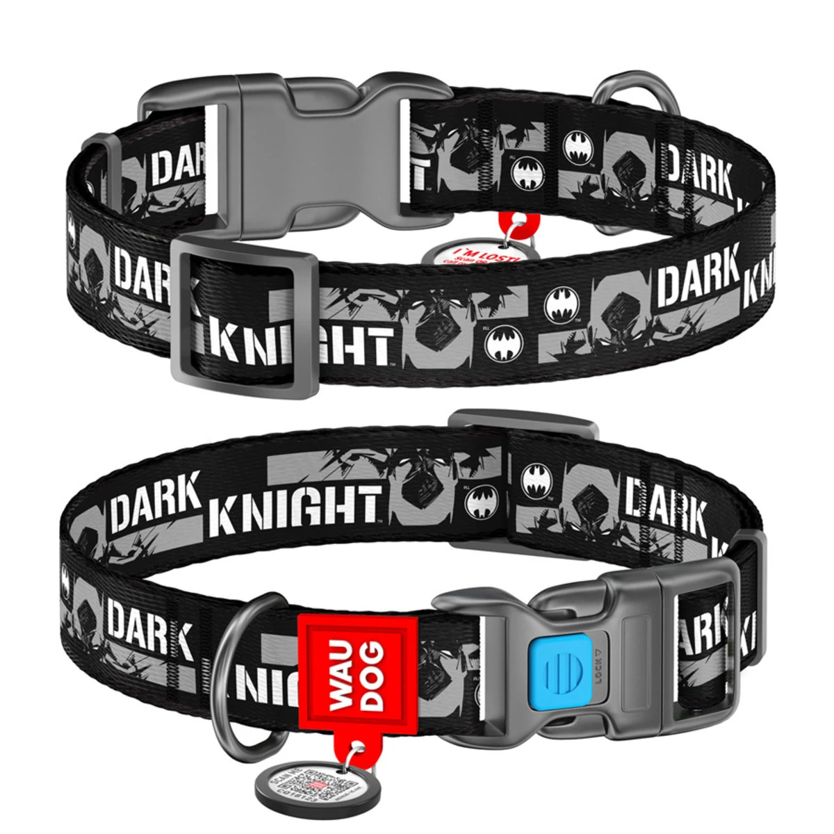 Ошейник для собак нейлоновый WAUDOG Nylon c QR паспортом, рисунок "Темный рыцарь", пластиковый фастекс, Ш 25 мм, Дл 35-58 см
