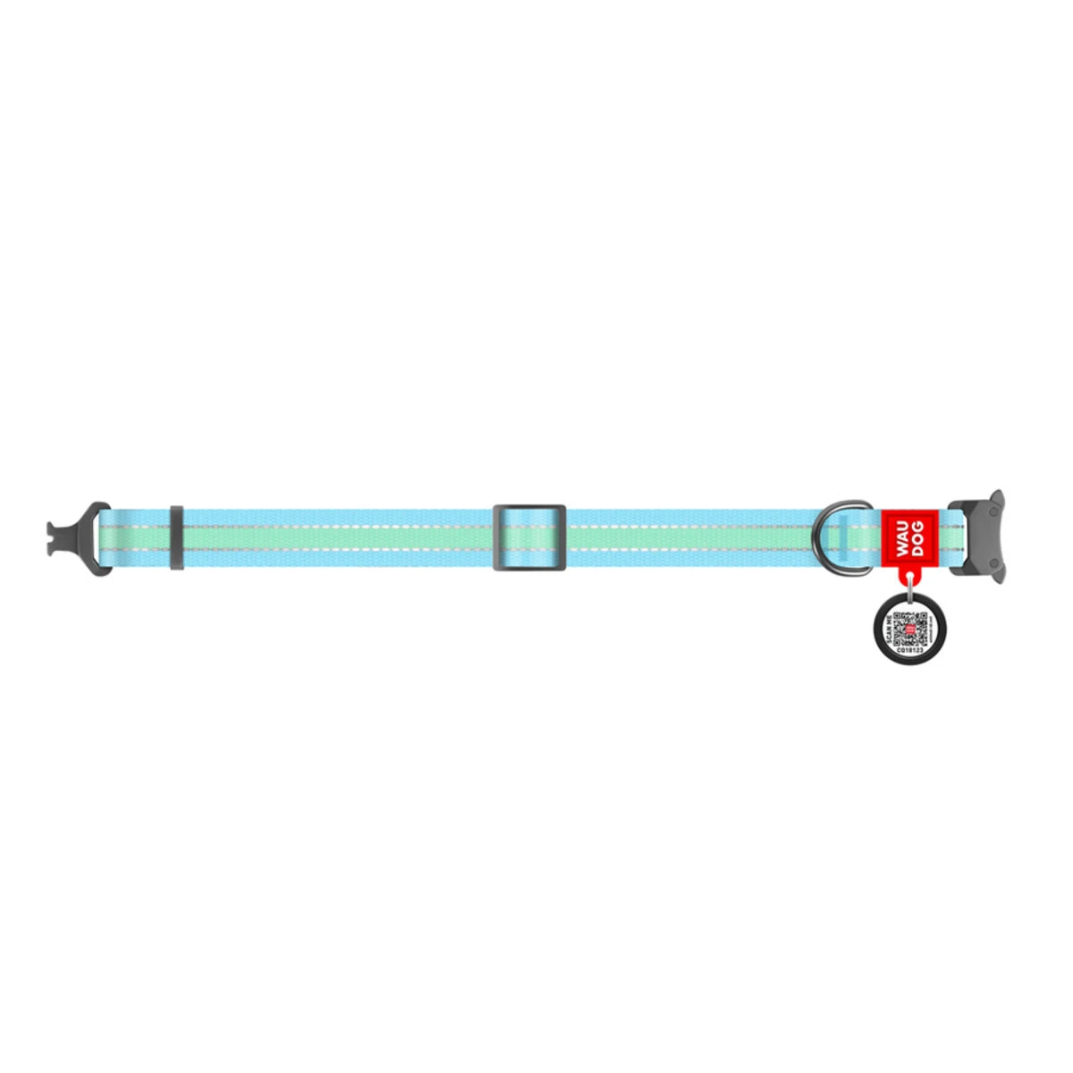Ошейник для собак нейлоновый WAUDOG Nylon c QR паспортом, светящийся/светоотражающий, металлическая пряжка-фастекс, Ш 15 мм, Дл 23-35 см, голубой