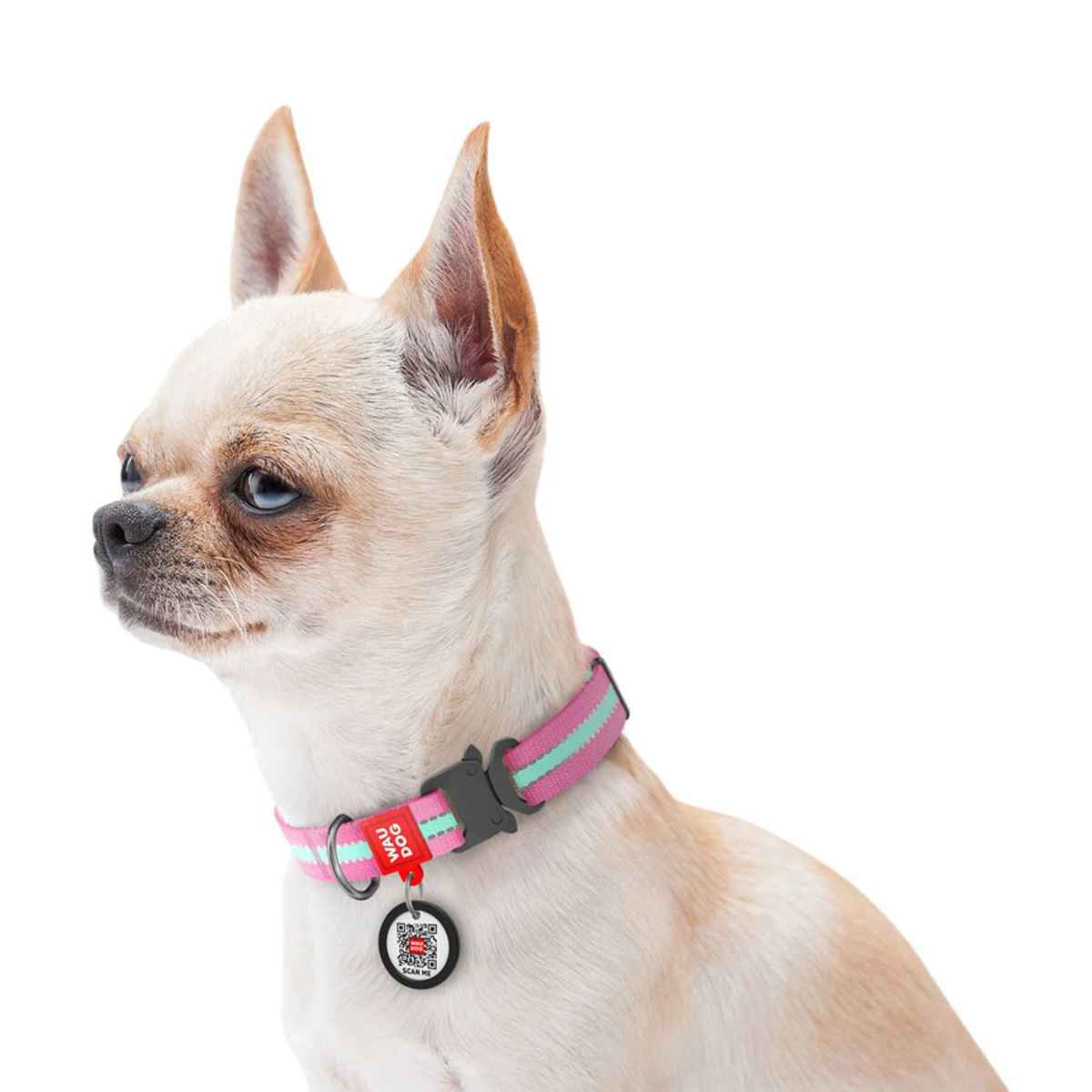 Ошейник для собак нейлоновый WAUDOG Nylon c QR паспортом, светящийся/светоотражающий, металлическая пряжка-фастекс, Ш 25 мм, Дл 35-58 см, розовый