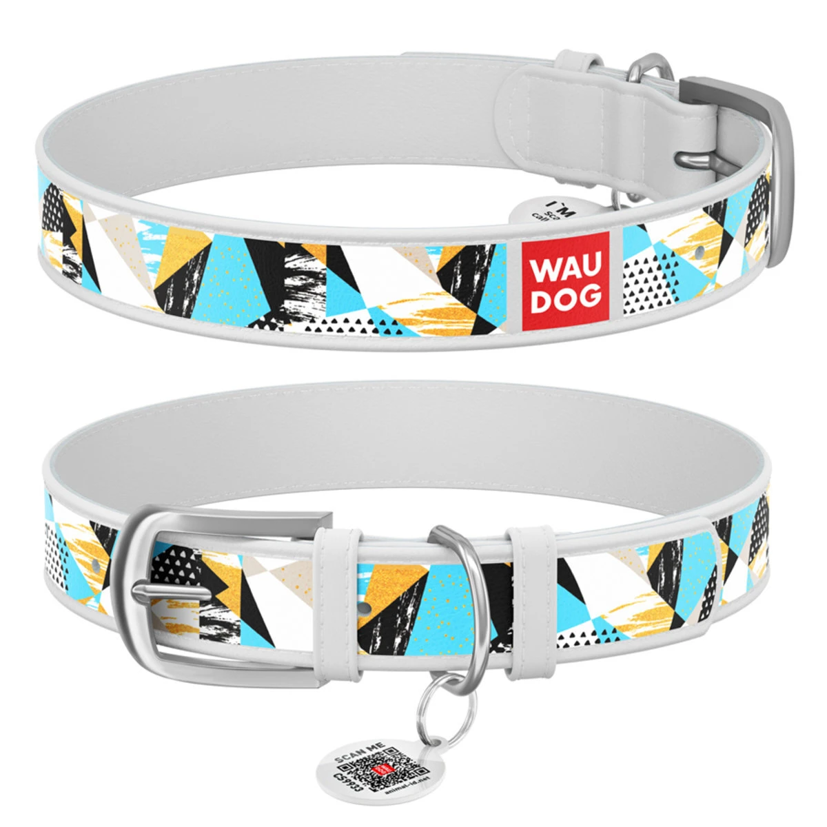 Ошейник WAUDOG Design с рисунком "Абстракция", премиум кожа, металлическая пряжка (ширина 25 мм, длина 38-49 см), белый
