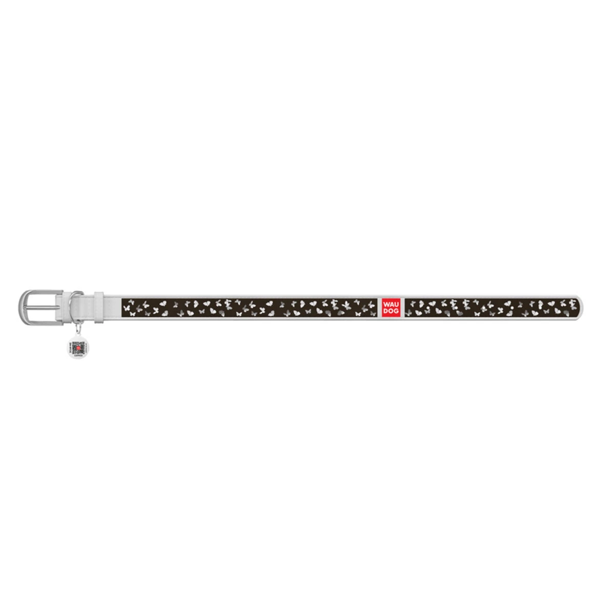 Ошейник WAUDOG Design с рисунком "Бабочки", премиум кожа, металлическая пряжка (ширина 12 мм, длина 19-25 см), белый