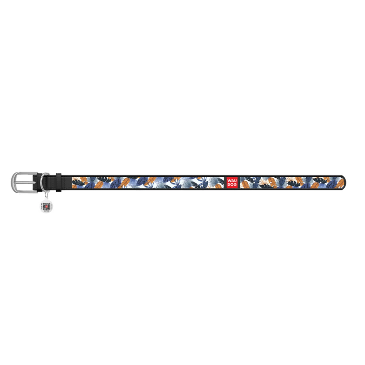Ошейник WAUDOG Design с рисунком "Джунгли", премиум кожа, металлическая пряжка (ширина 25 мм, длина 38-49 см), черный