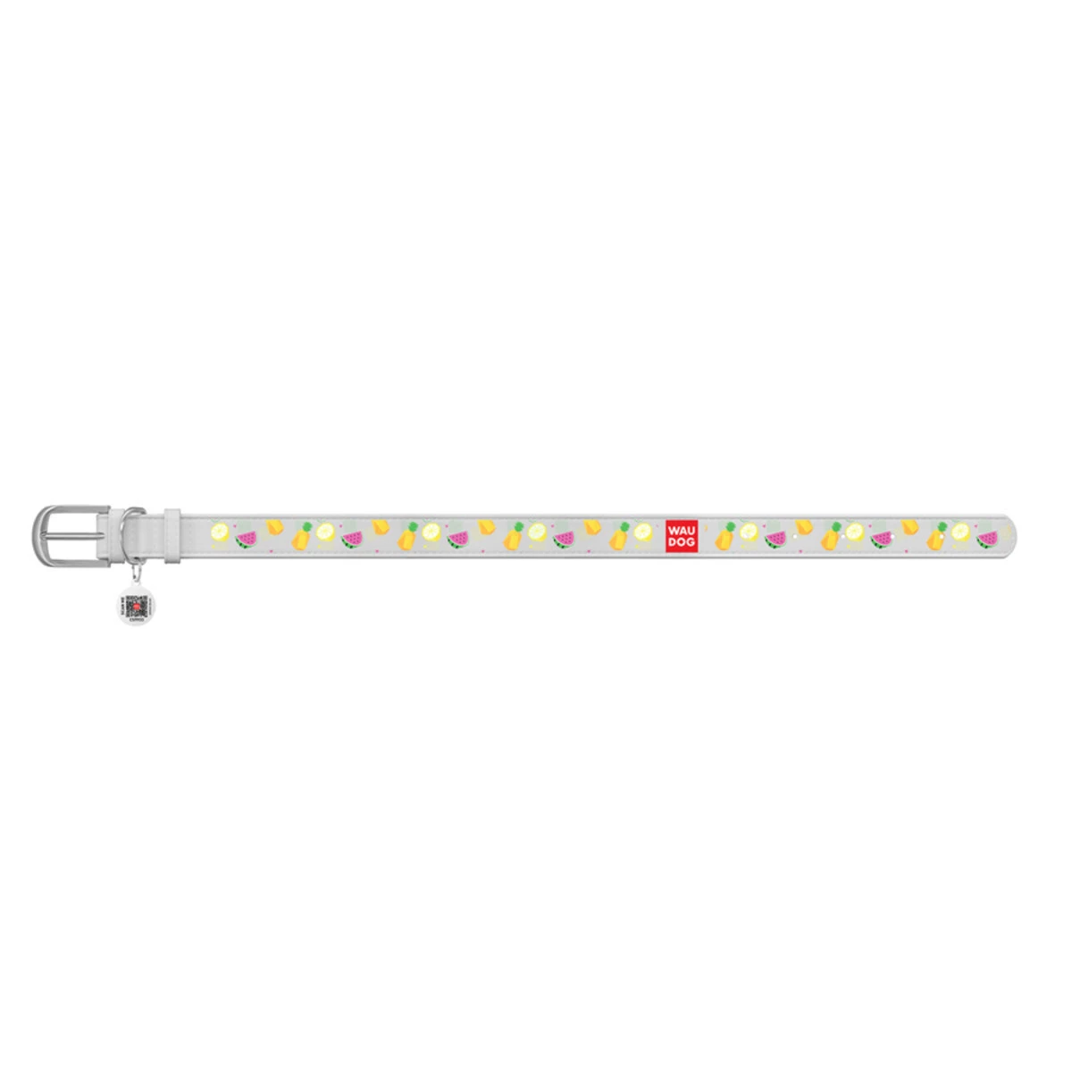 Ошейник WAUDOG Design с рисунком "Фрукты", премиум кожа, металлическая пряжка (ширина 35 мм, длина 46-60 см), белый