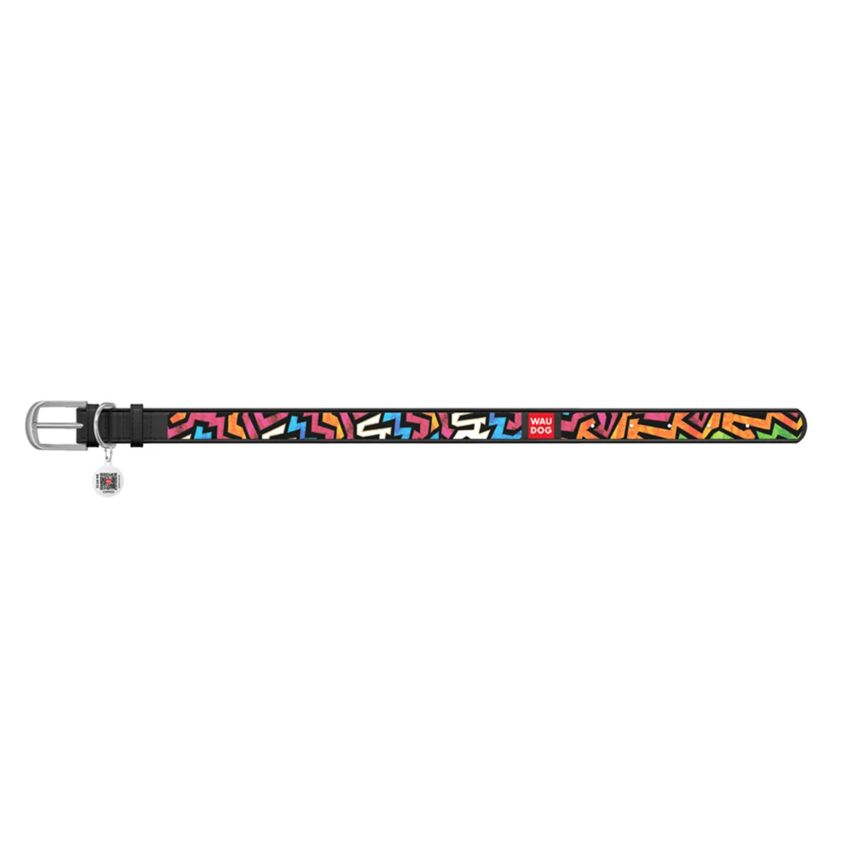 Ошейник WAUDOG Design с рисунком "Граффити", премиум кожа, металлическая пряжка (ширина 12 мм, длина 21-29 см), черный