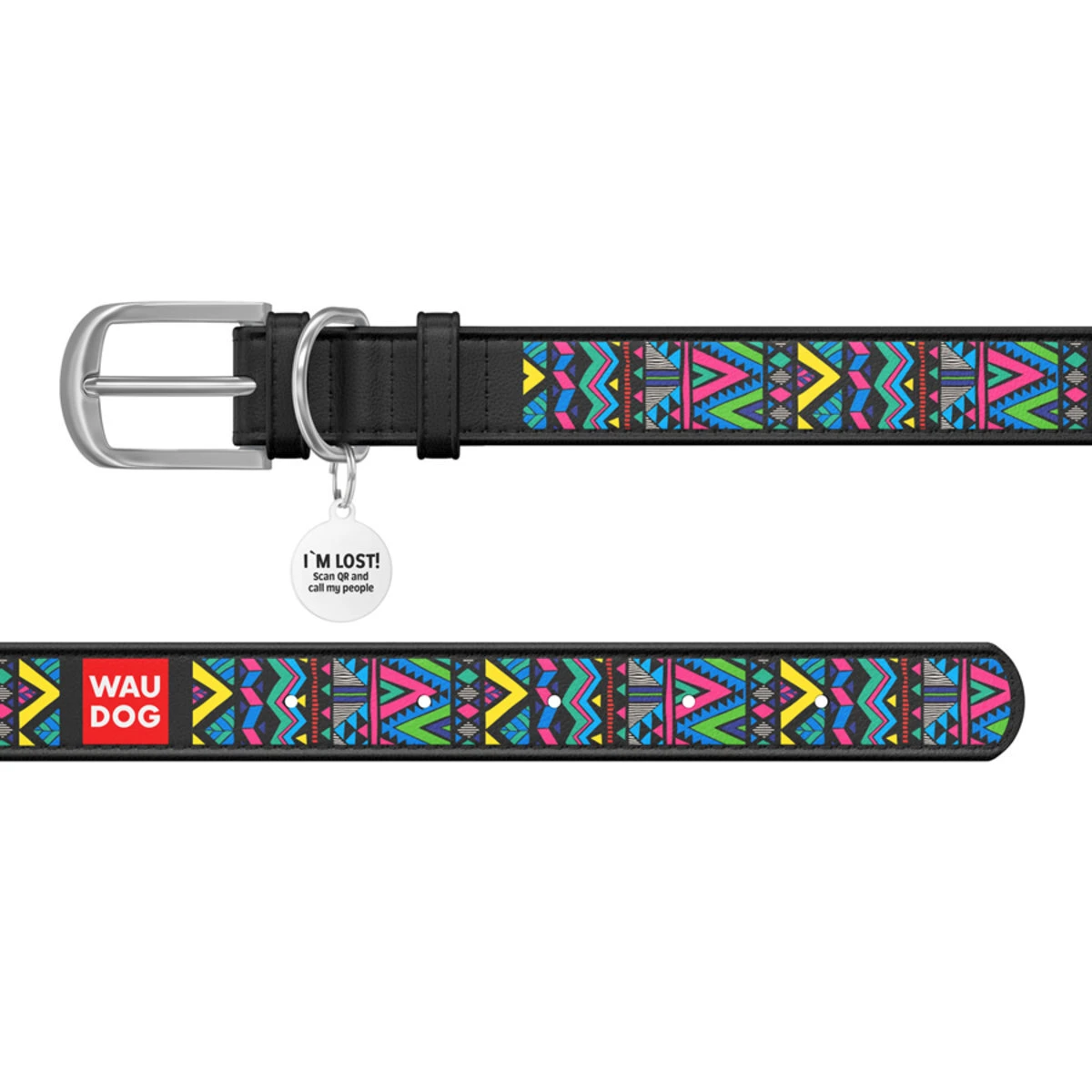Ошейник WAUDOG Design с рисунком "Инди", премиум кожа, металлическая пряжка (ширина 12 мм, длина 21-29 см), черный