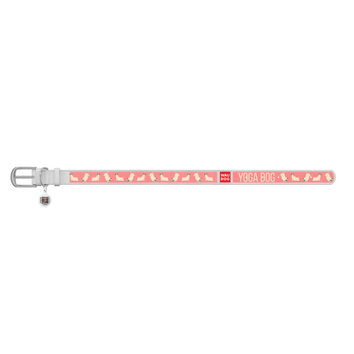 Ошейник WAUDOG Design с рисунком "Йога-пёс", премиум кожа, металлическая пряжка (ширина 12 мм, длина 21-29 см), белый