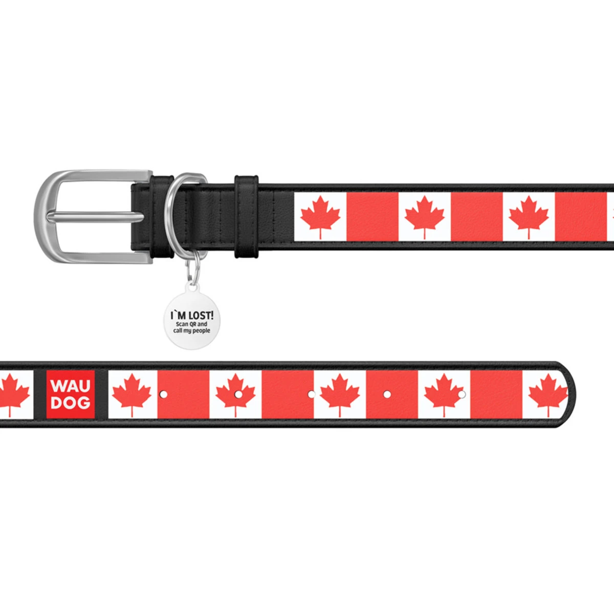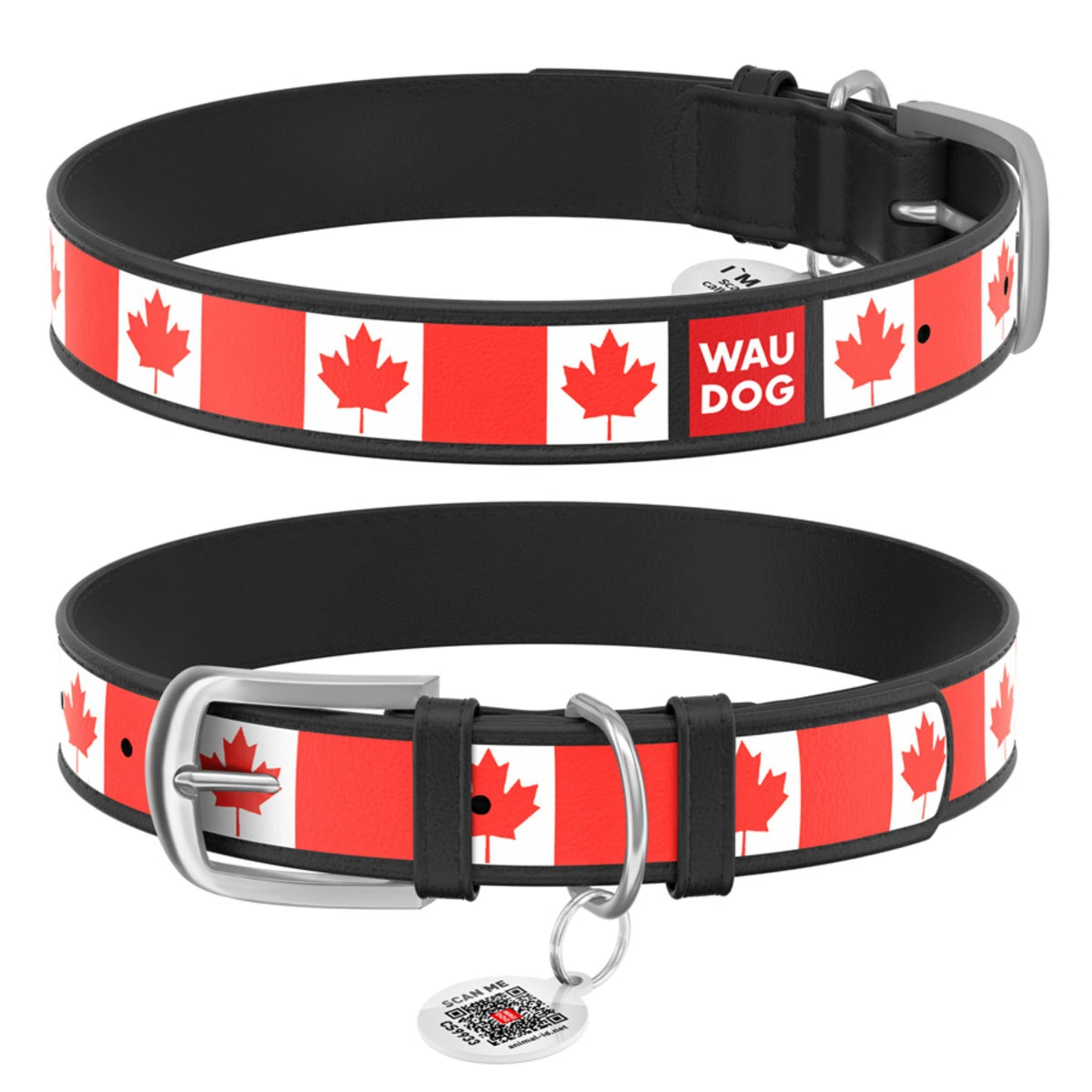 Ошейник WAUDOG Design с рисунком "Кленовый лист", премиум кожа, металлическая пряжка (ширина 12 мм, длина 21-29 см), черный