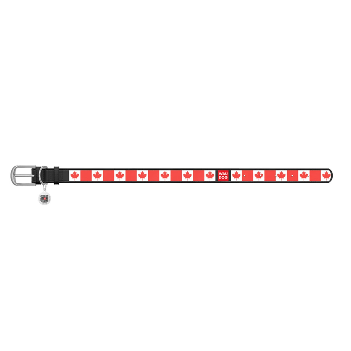 Ошейник WAUDOG Design с рисунком "Кленовый лист", премиум кожа, металлическая пряжка (ширина 20 мм, длина 30-39 см), черный