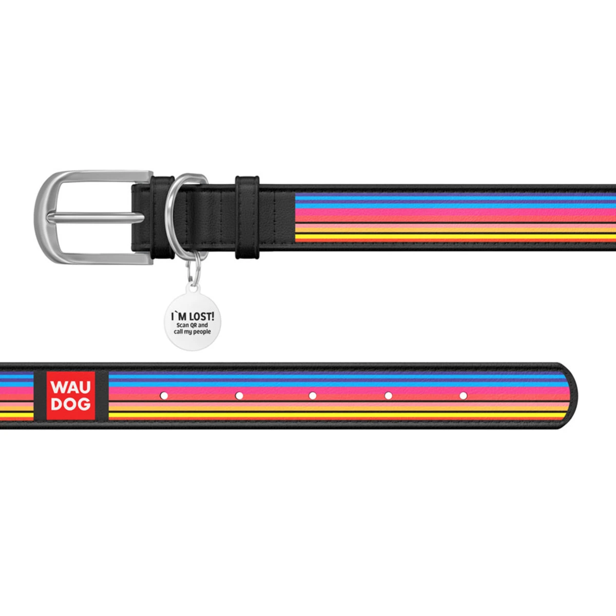 Ошейник WAUDOG Design с рисунком "Линии 1", премиум кожа, металлическая пряжка (ширина 12 мм, длина 21-29 см), черный