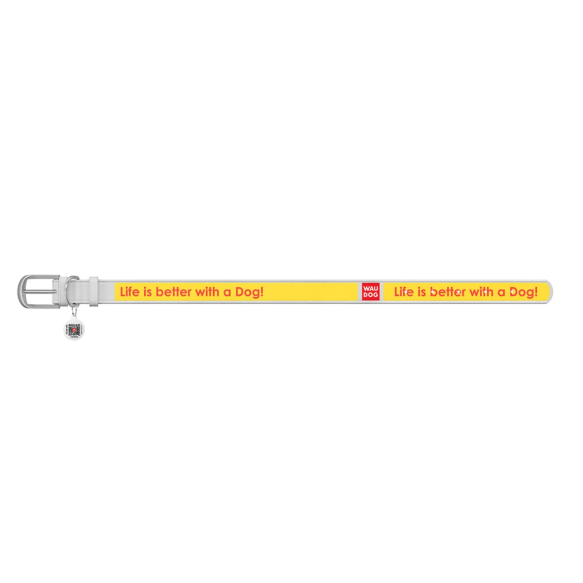 Ошейник WAUDOG Design с рисунком "Лучшая жизнь", премиум кожа, металлическая пряжка (ширина 12 мм, длина 19-25 см), белый