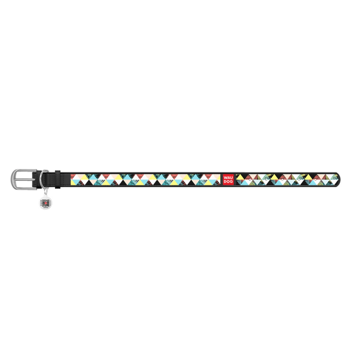 Ошейник WAUDOG Design с рисунком "Пэчворк", премиум кожа, металлическая пряжка (ширина 12 мм, длина 21-29 см), черный