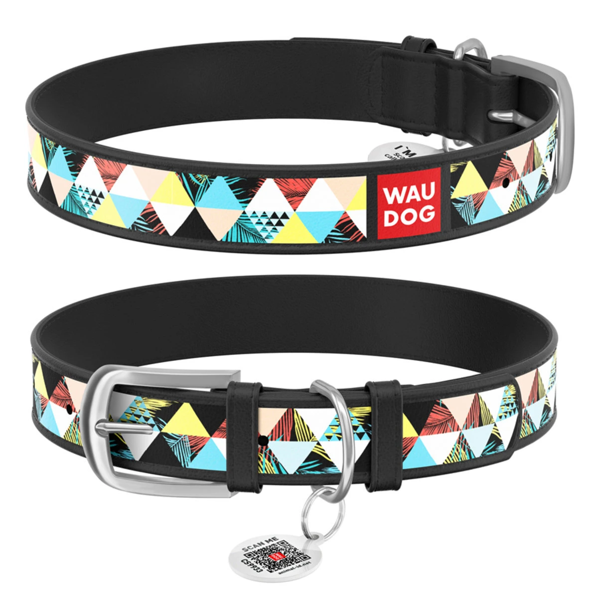 Ошейник WAUDOG Design с рисунком "Пэчворк", премиум кожа, металлическая пряжка (ширина 25 мм, длина 38-49 см), черный