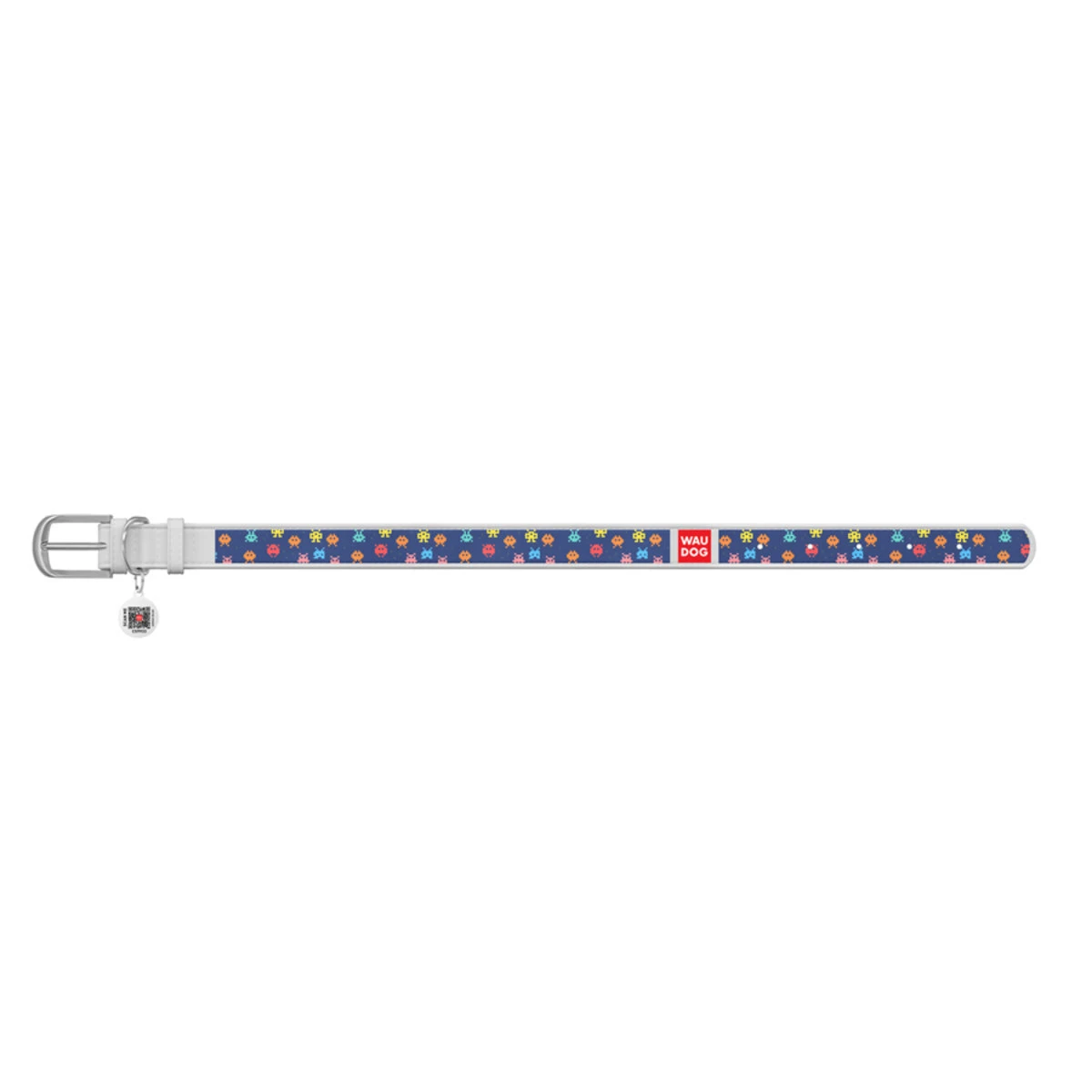 Ошейник WAUDOG Design с рисунком "Пиксели", премиум кожа, металлическая пряжка (ширина 25 мм, длина 38-49 см), белый