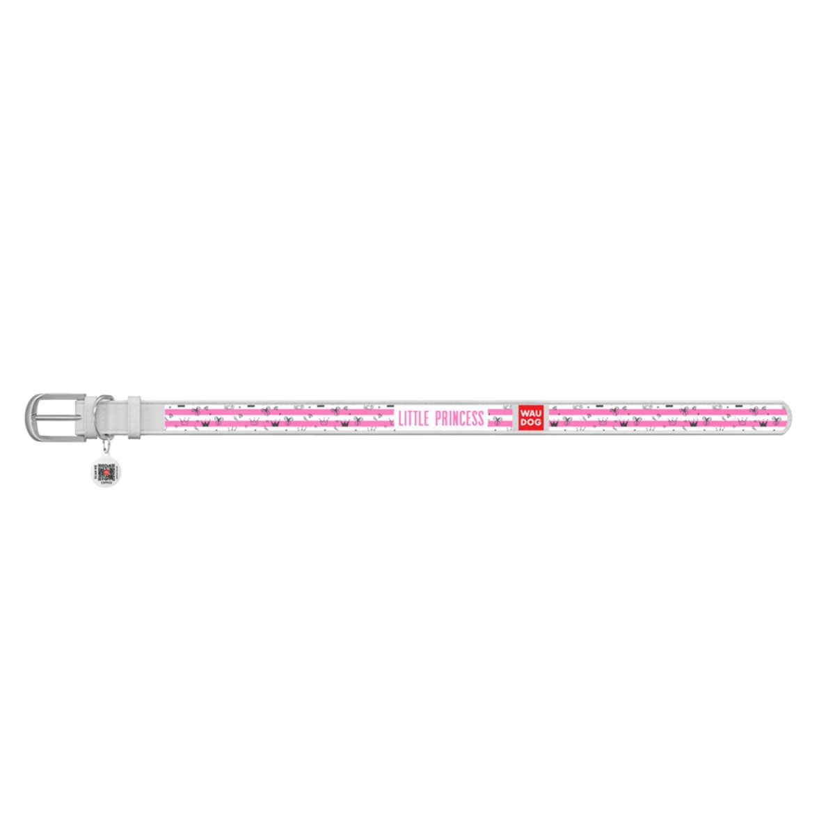 Ошейник WAUDOG Design с рисунком "Принцесса", премиум кожа, металлическая пряжка (ширина 35 мм, длина 46-60 см), белый