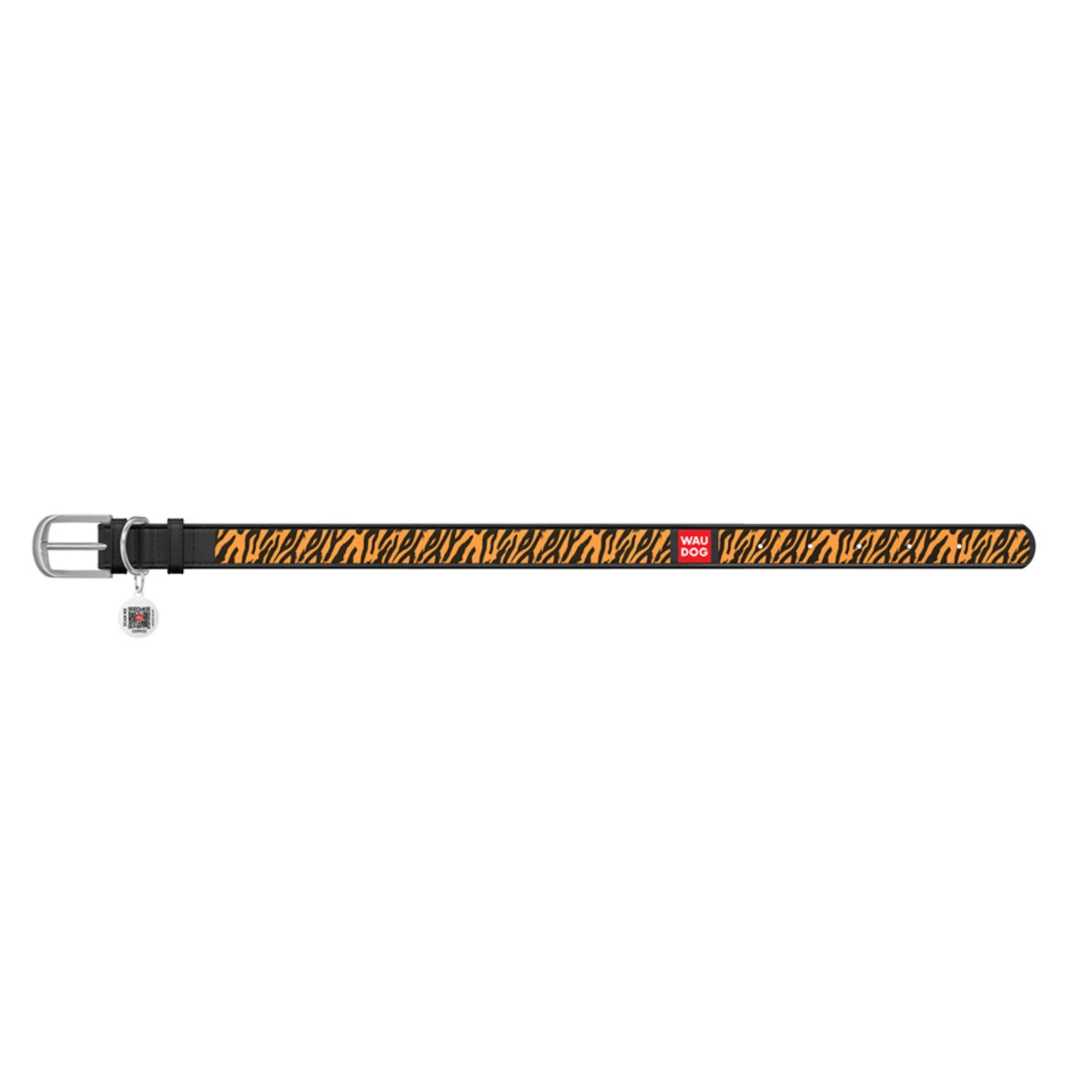Ошейник WAUDOG Design с рисунком "Тигр", премиум кожа, металлическая пряжка (ширина 25 мм, длина 38-49 см), черный