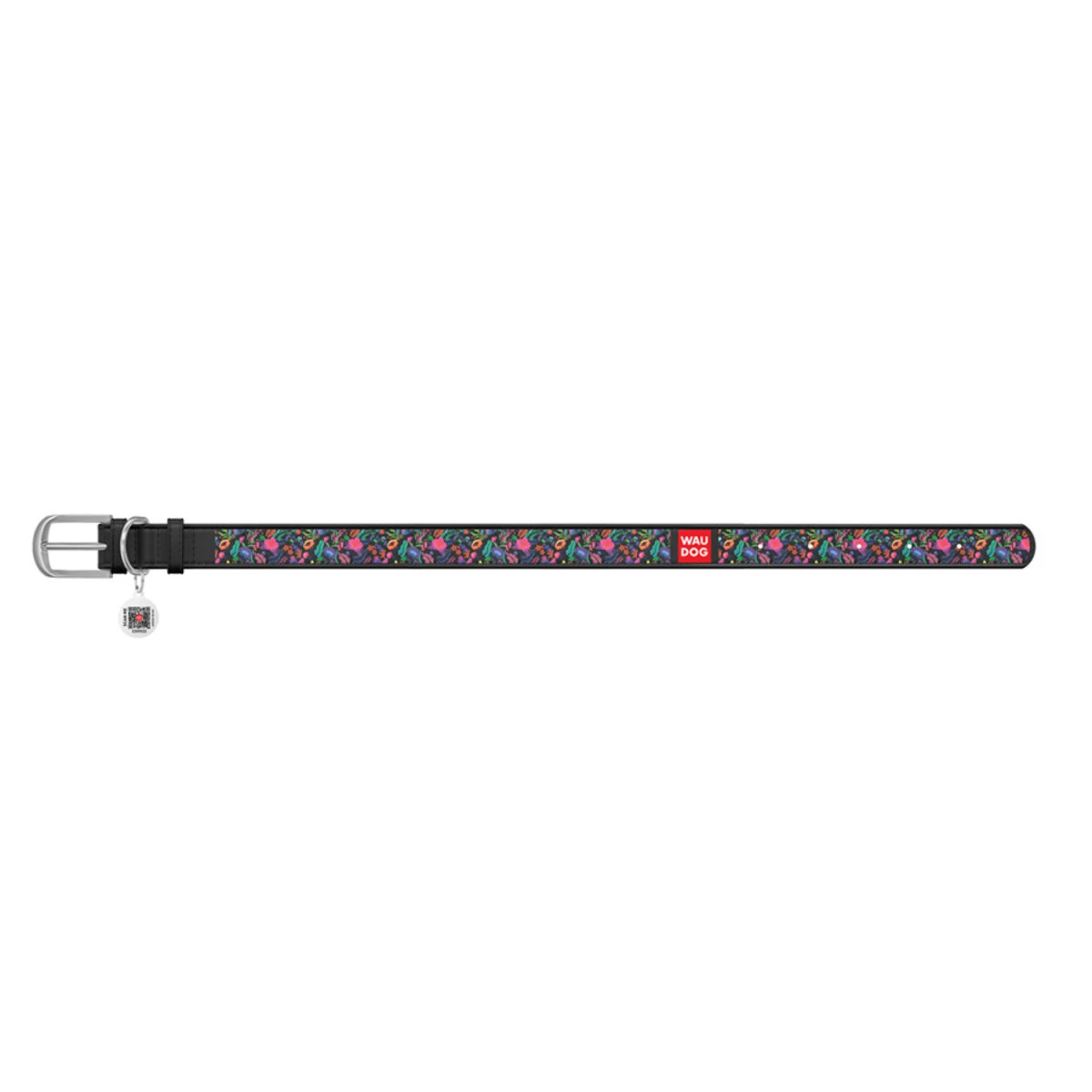 Ошейник WAUDOG Design с рисунком "Волшебные цветы", премиум кожа, металлическая пряжка (ширина 15 мм, длина 27-36 см), черный