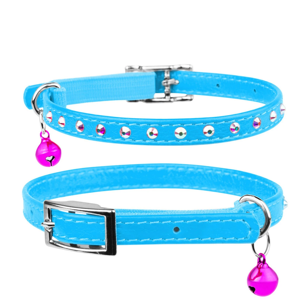 Ошейник "WAUDOG GLAMOUR" с резинкой, клей.стразами для кошек (ширина 9мм, длина 22-30см), голубой