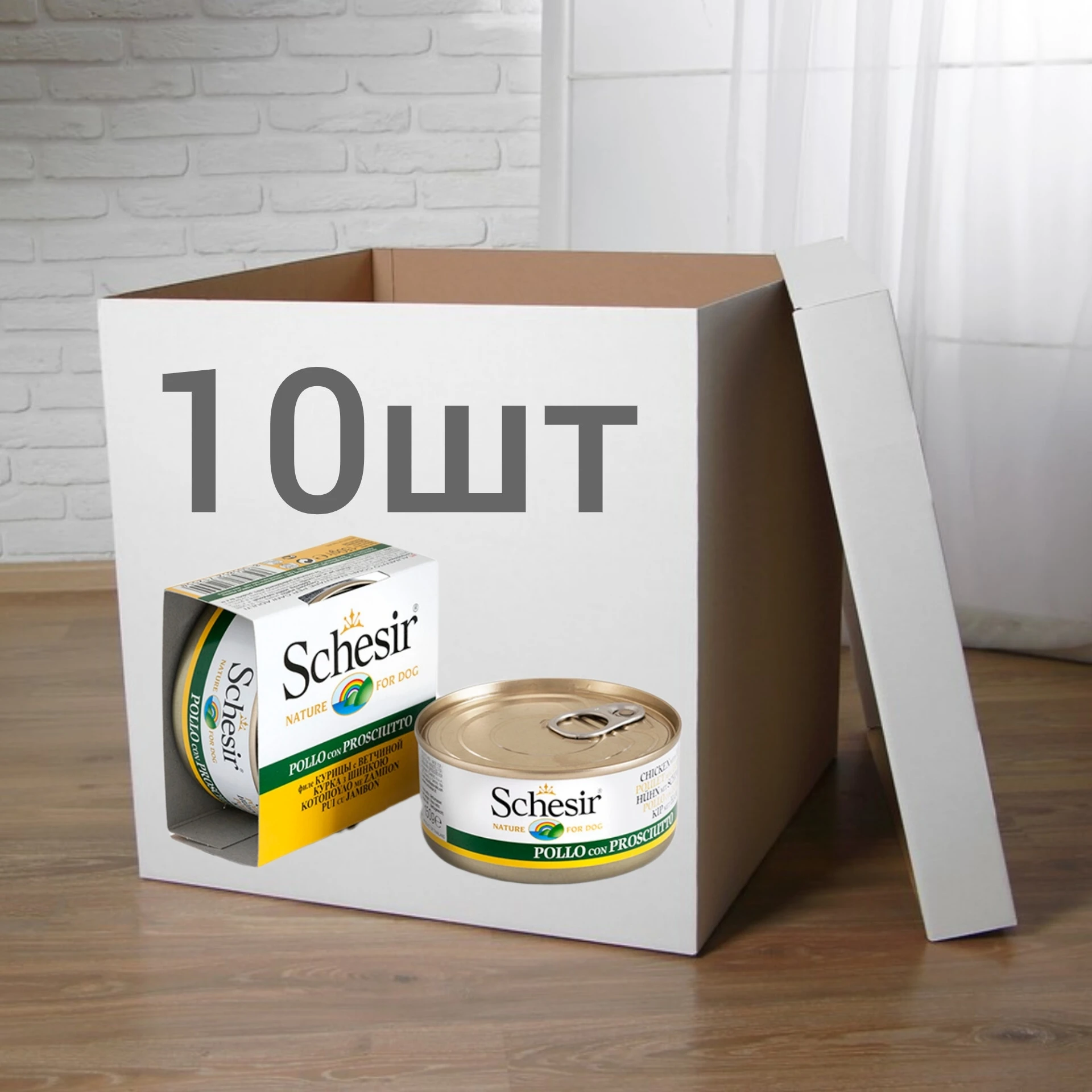 Натуральный влажный корм с цельными кусочками куриного филе и ветчиной для взрослых собак. Вкусное и полезное блюдо без добавления искусственных красителей и консервантов.