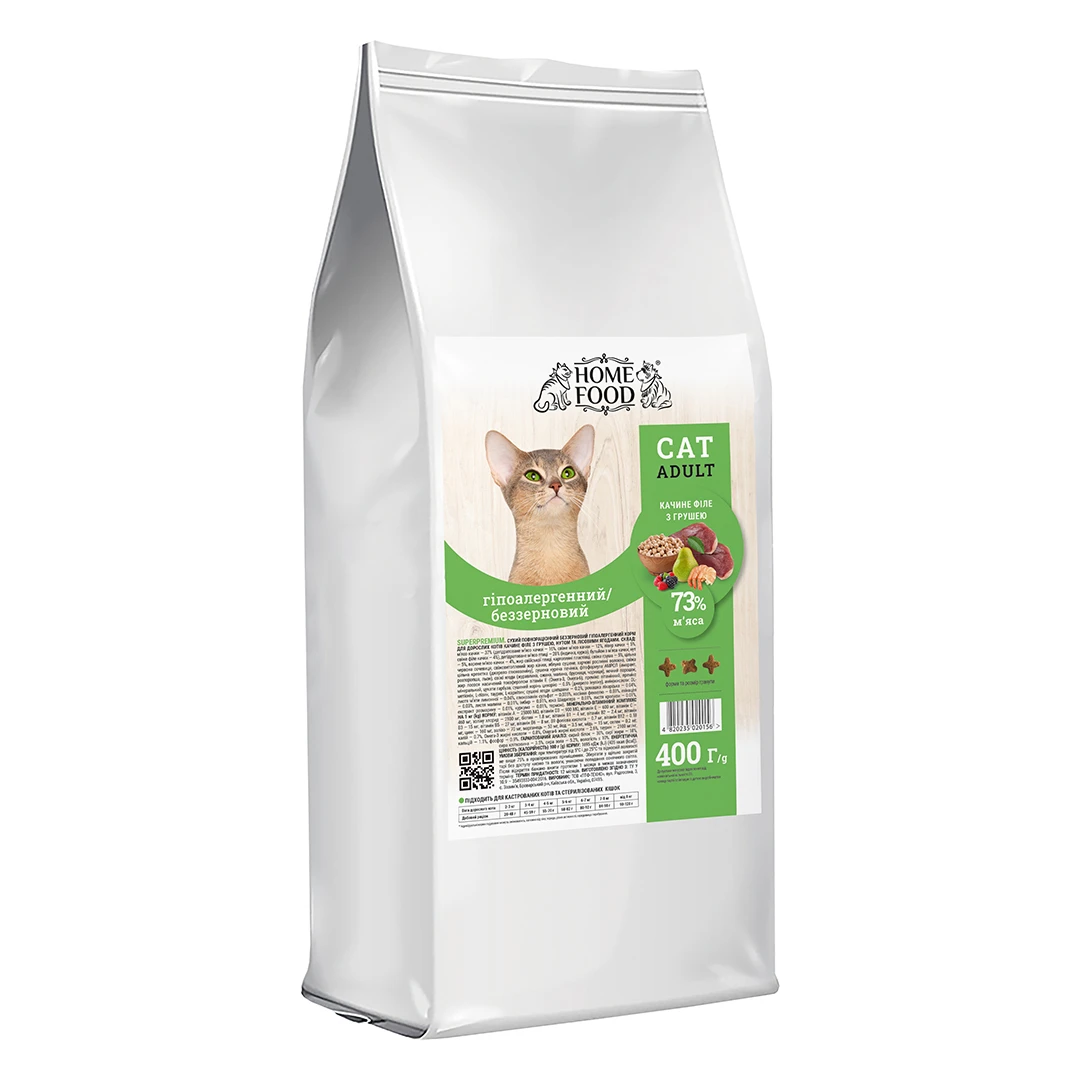 Среди основных компонентов полнорационного сухого беззернового гипоаллергенного корма для активных взрослых кошек «Утиное филе с нутом, грушей и лесными ягодами» является свежее мясо утки – источник наиболее полезных животных протеинов для домашних любимцев. Мясо утки содержит большое количество витаминов А (ретинол), В и Е, участвующих в здоровом развитии организма и положительно влияющих на состояние кожи и шерсти животного. Содержание отварного мяса индейки делает корм пригодным даже для употребления человеком.
