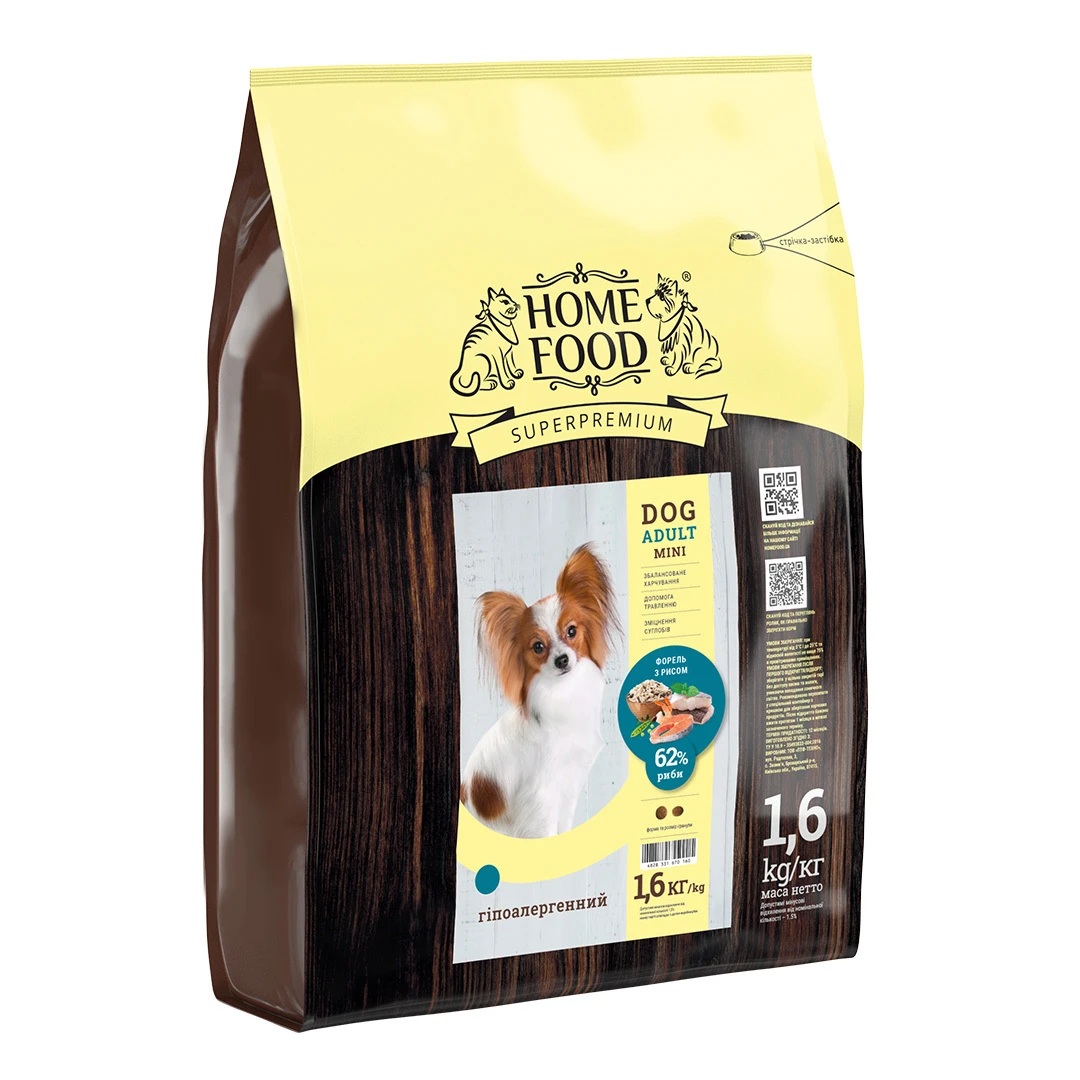 Полнорационый гипоаллергенный сухой корм для взрослых собак мелких пород Home Food форель с рисом и овощами 1.6 кг