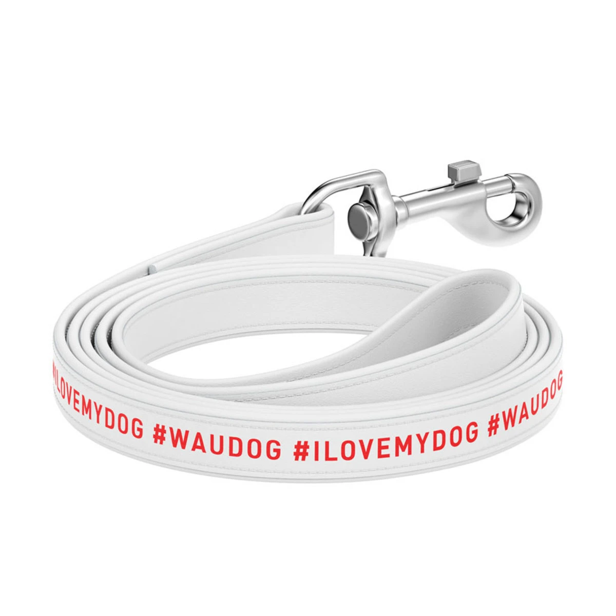 Поводок для собак кожаный WAUDOG Design, рисунок "я люблю свою собаку", Ш 25 мм, Дл 122 см, белый