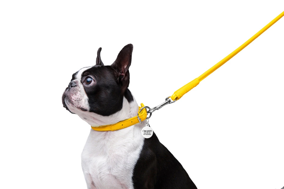 Поводок для собак кожаный WAUDOG Glamour, круглый, Д 8 мм, Дл 122 см, желтый