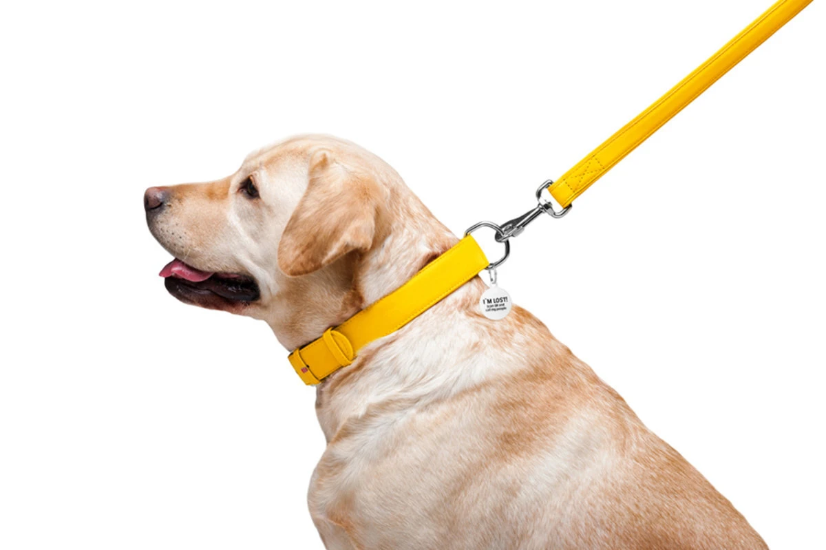 Поводок для собак кожаный WAUDOG Glamour, Ш 25 мм, Дл 122 см, желтый
