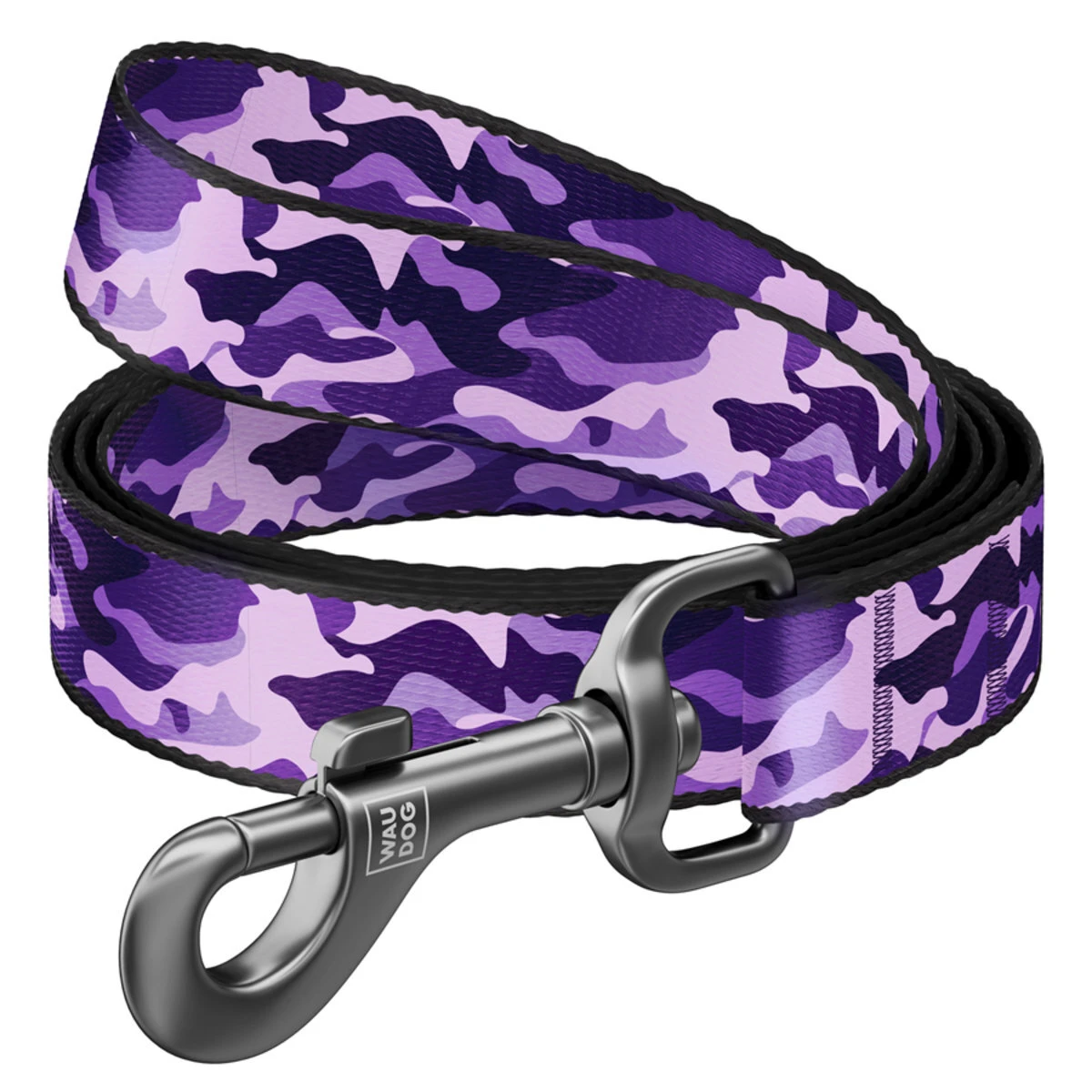 Поводок для собак нейлоновый WAUDOG Nylon, рисунок "Фиолетовый камо", Ш 15 мм, Дл 122 см