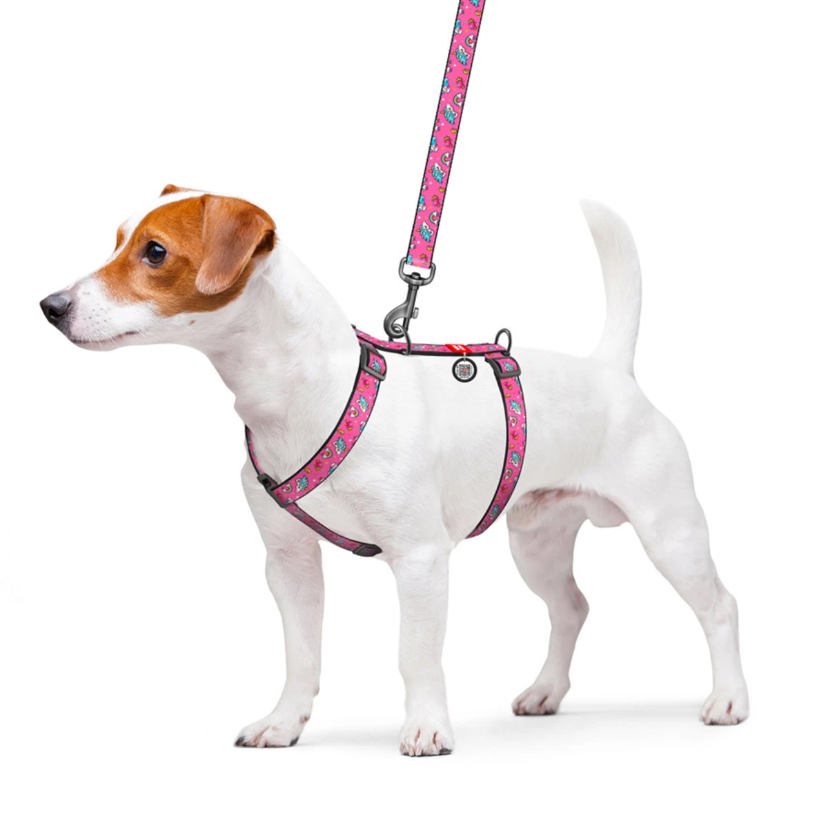 Шлея для собак анатомическая H-образная WAUDOG Nylon с QR-паспортом, рисунок "Единороги", пластиковый фастекс, М, Ш 20 мм, А 40-70, В 50-80