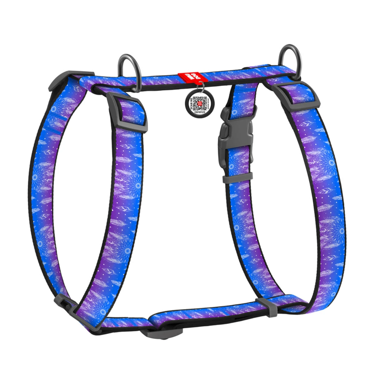 Шлея для собак анатомическая H-образная WAUDOG Nylon с QR-паспортом, рисунок "Ловец снов", пластиковый фастекс, S, Ш 15 мм, A 30-40, B 30-50