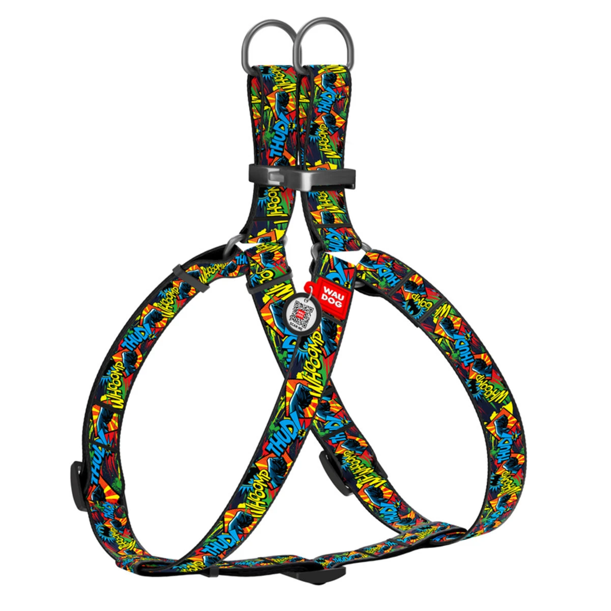 Шлея для собак анатомическая WAUDOG Nylon c QR паспортом, рисунок "Бэтмен Яркий", металлическая пряжка-фастекс, Ш 15 мм, Дл 40-55 см