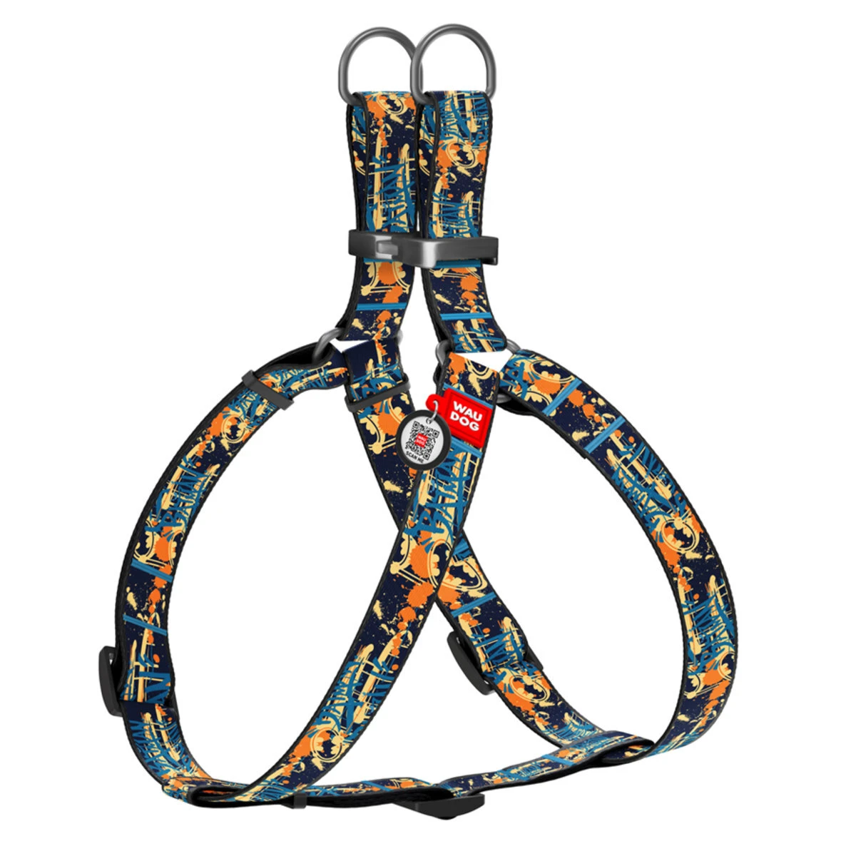 Шлея для собак анатомическая WAUDOG Nylon c QR паспортом, рисунок "Бэтмен Джинс", металлическая пряжка-фастекс, Ш 25 мм, Дл 60-90 см