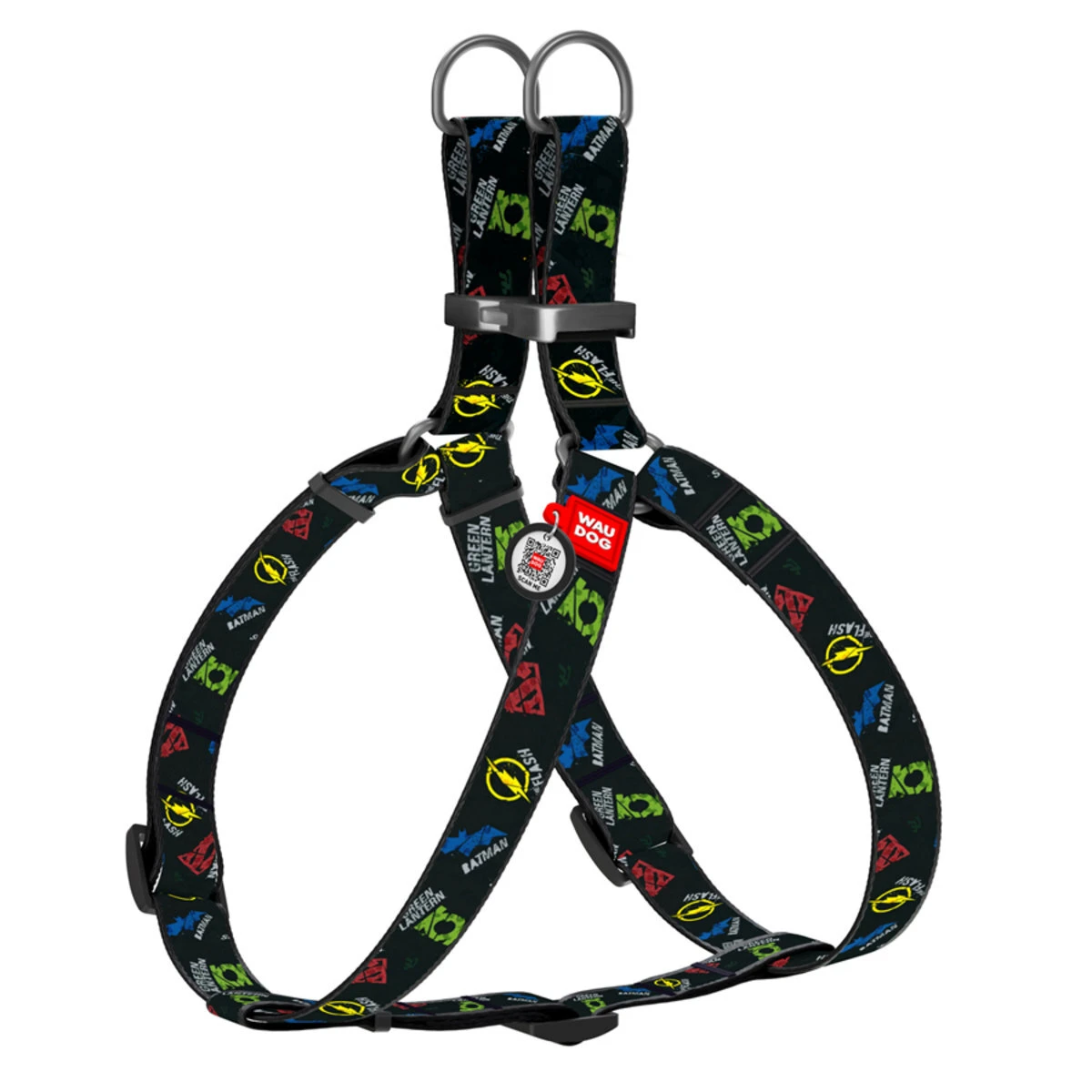 Шлея для собак анатомическая WAUDOG Nylon c QR паспортом, рисунок "Лига справедливости", металлическая пряжка-фастекс, Ш 20 мм, Дл 50-80 см