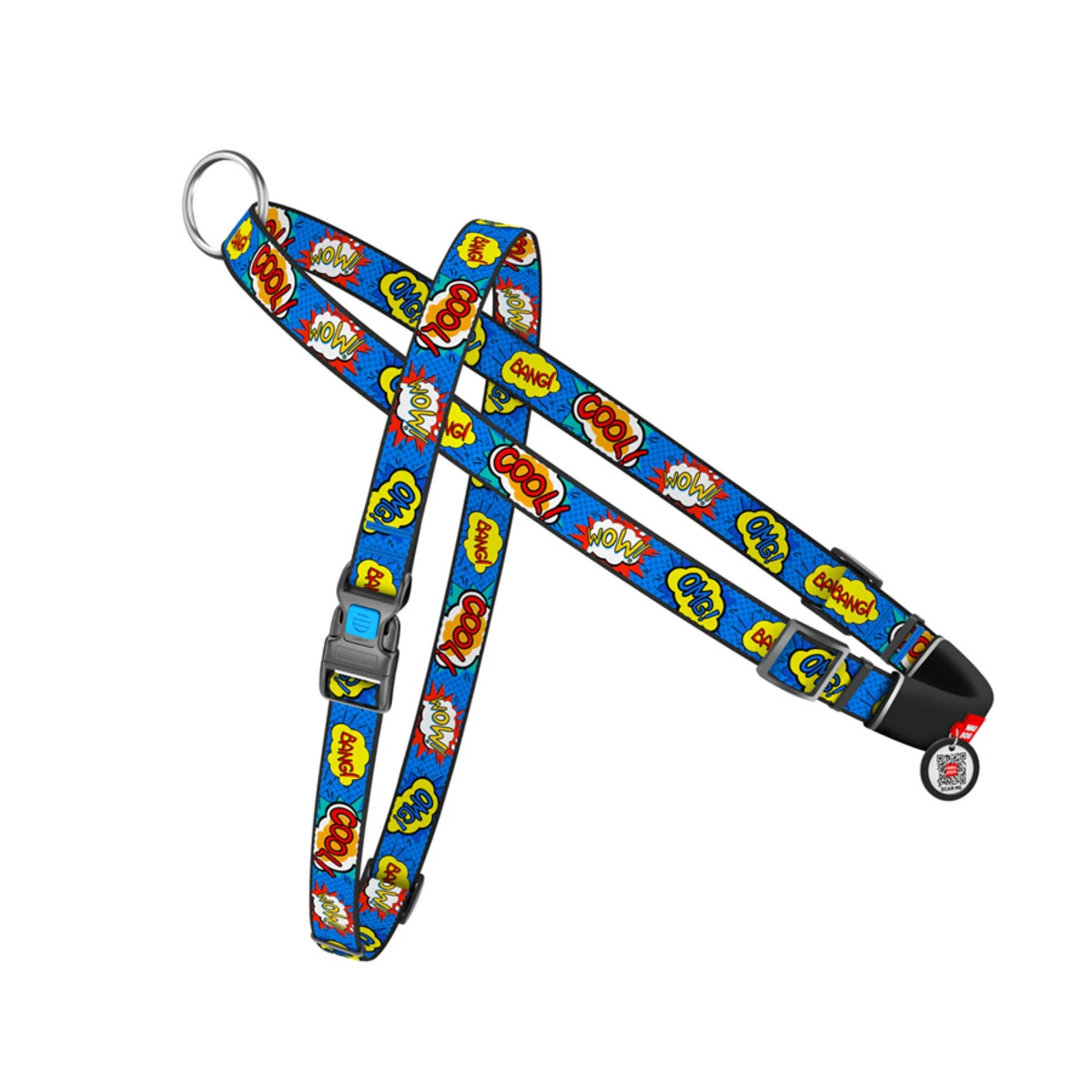 Шлея для собак быстросъемная WAUDOG Nylon c QR паспортом, рисунок "ВАУ", пластиковый фастекс, Ш 20 мм, А 45-65 см, В 55-80 см