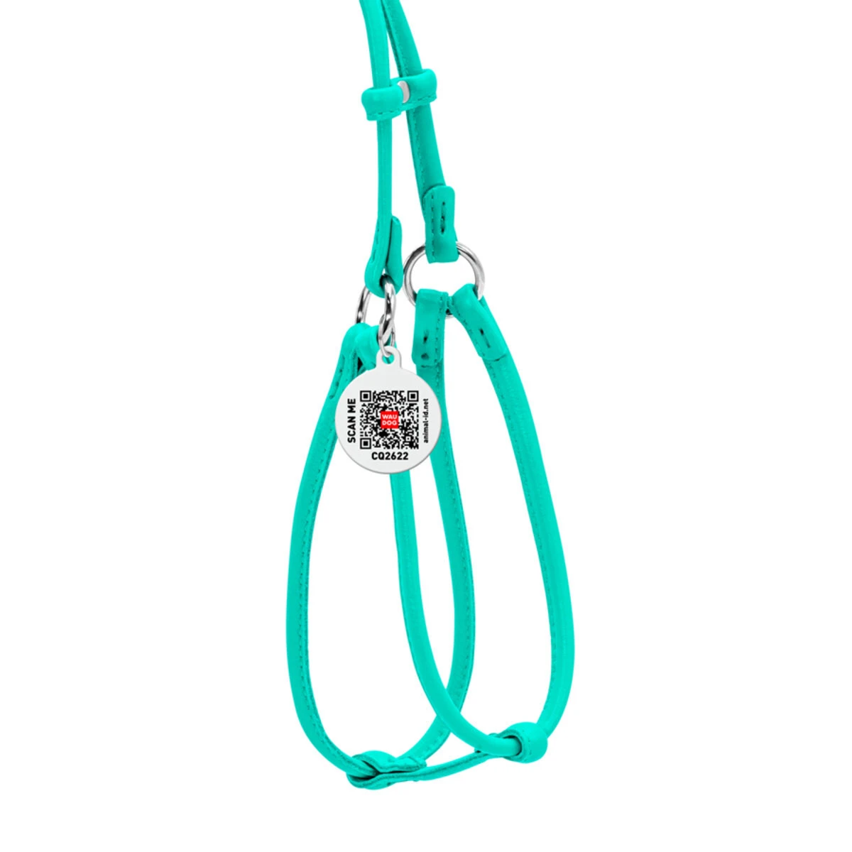 Шлея с поводком для собак кожаная WAUDOG Glamour c QR паспортом, круглая, Д 6 мм, А 26-46 см, В 30-50 см, ментоловый