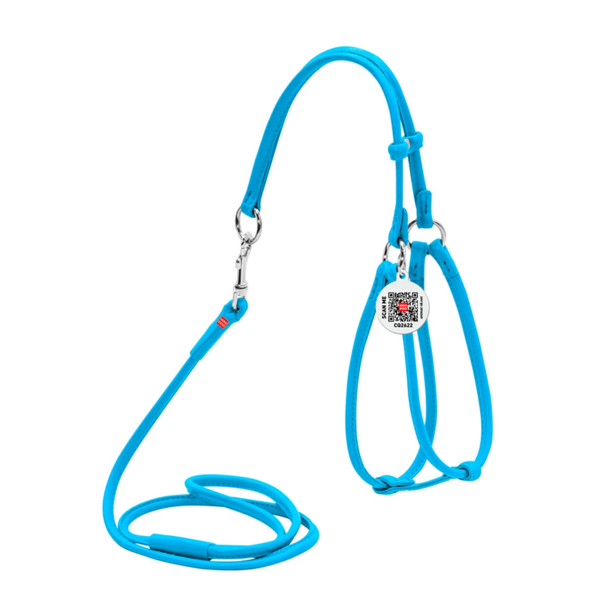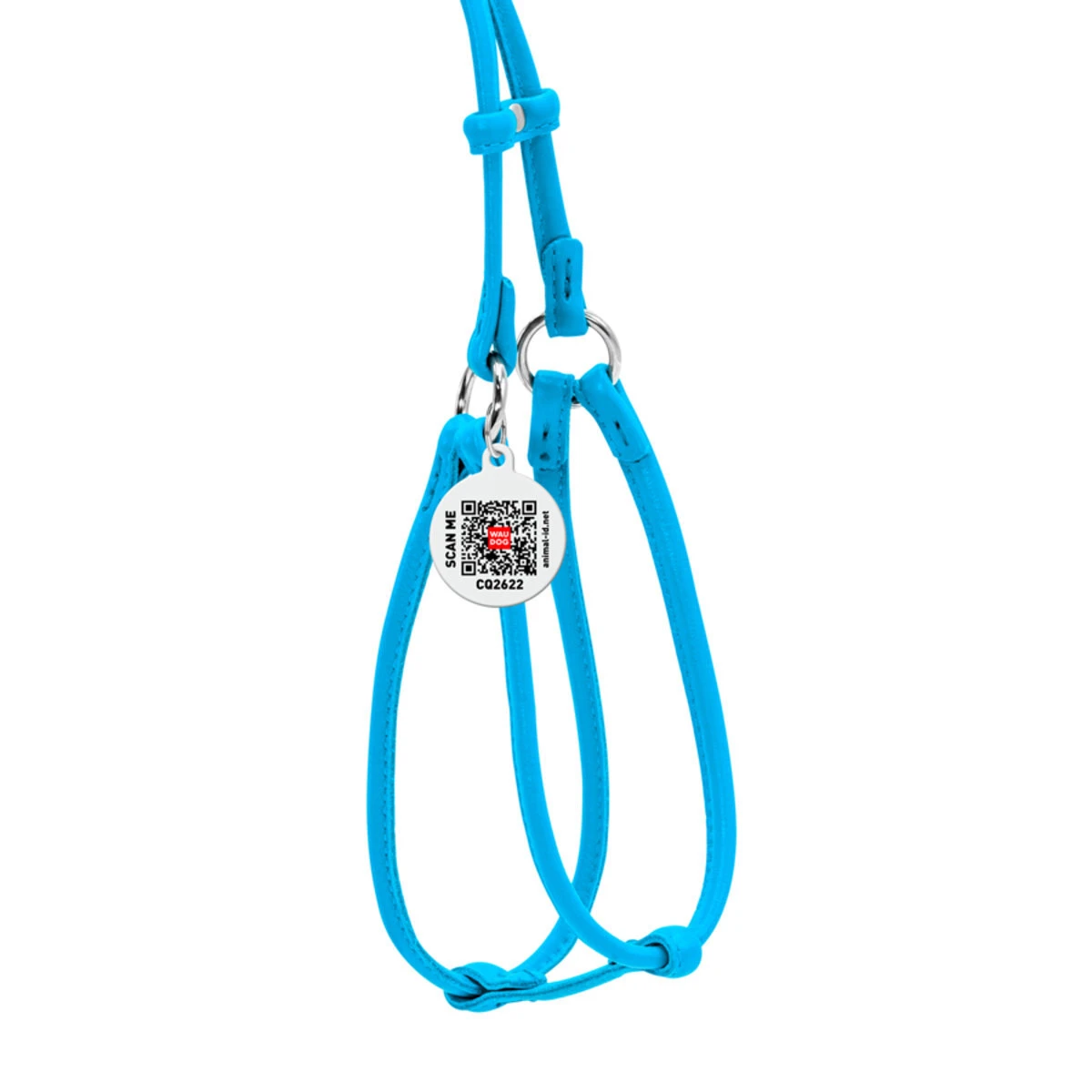 Шлея с поводком для собак кожаная WAUDOG Glamour c QR паспортом, круглая, Д 6 мм, А 42-60 см, В 46-64 см, голубой