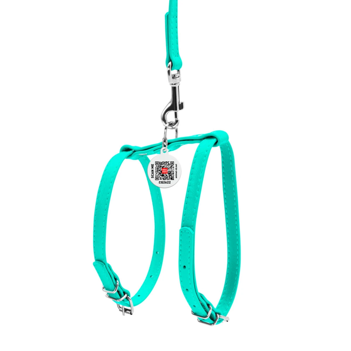 Шлея с поводком для собак кожаная WAUDOG Glamour c QR паспортом, Ш 9 мм, А 20-30 см, В 30-40 см, ментоловый