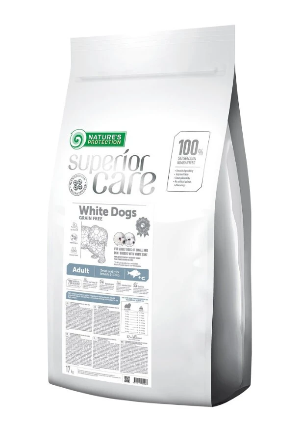 Nature's Protection Superior Care White Dogs - беззерновой сухой корм супер-премиум класса для взрослых собак мелких и очень мелких пород (1-10 кг) с белой и светлой шерсти (размер гранулы 6-8мм).