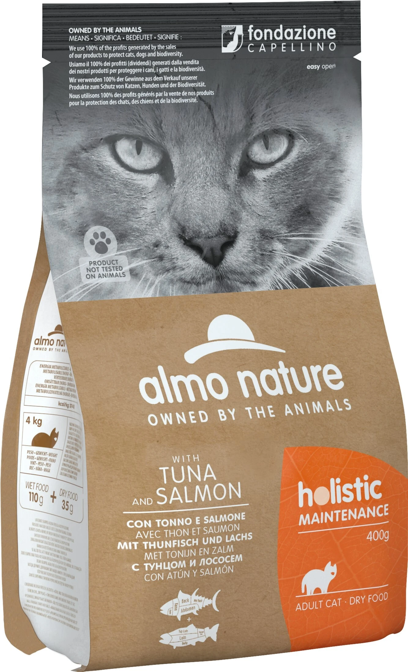 Almo Nature Holistic Cat — полнорационный сухой корм с тунцом, лососем и рисом специально разработанный для взрослых кошек.