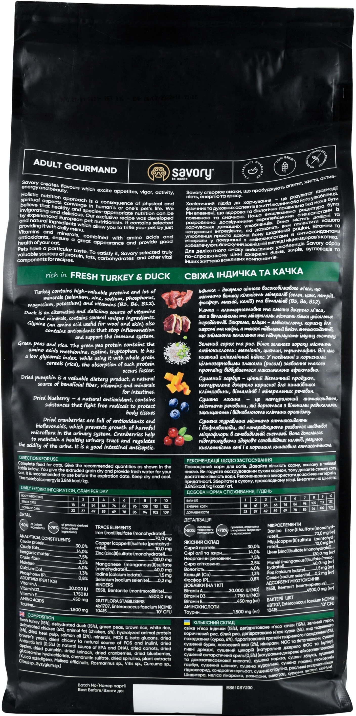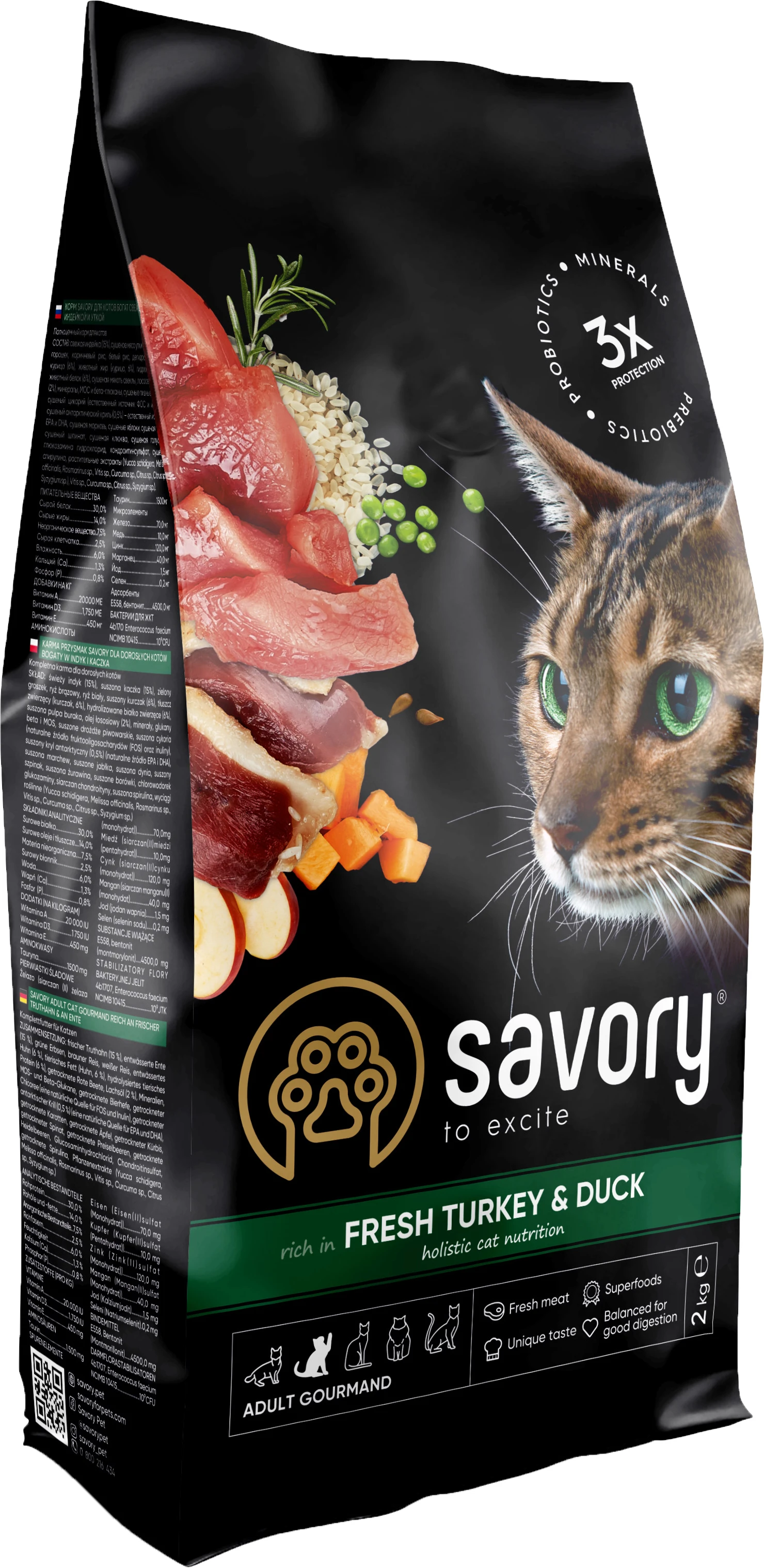 Сухой корм для кошек Savory содержит свежее мясо индейки и дегидратированное мясо утки, ягоды, фрукты и овощи. Эти компоненты созданы природой, чтобы обеспечить коту для крепкое здоровье и энергию для ежедневных развлечений.