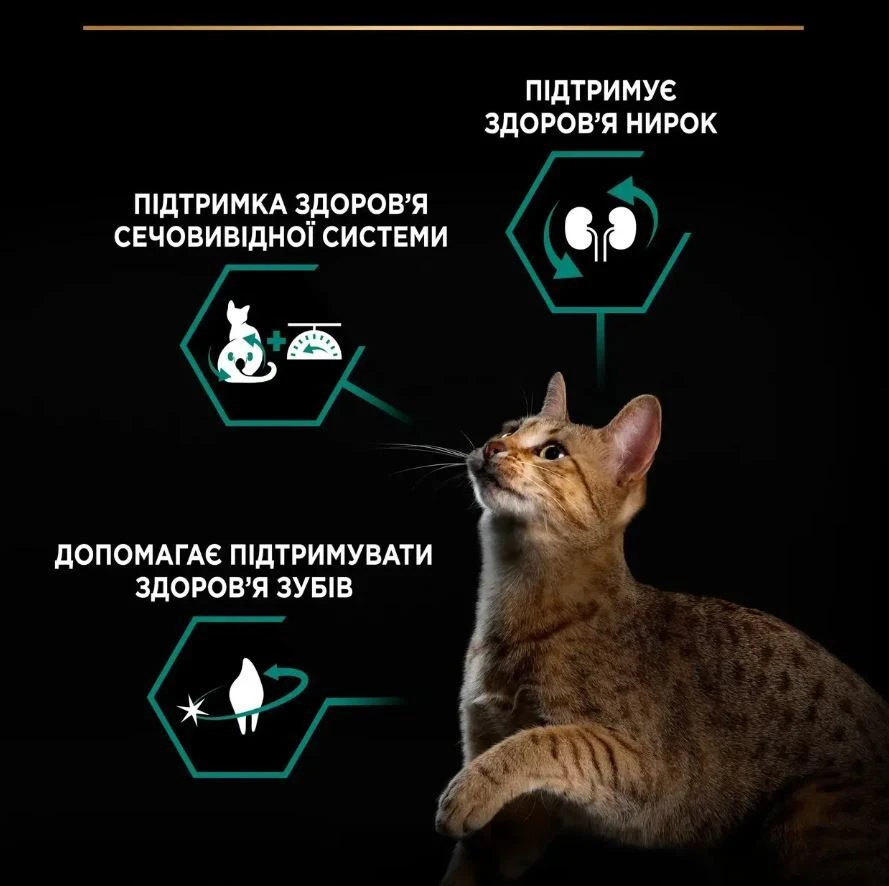 • Поддерживает здоровье мочевыводящей системы у стерилизованных кошек и кастрированных кошек.
