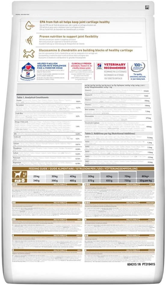 Рекомендации по кормлению: Сухой корм Hill's Science Plan Adult Healthy Mobility Large Breed рекомендован для взрослых собак больших пород в возрасте до 5 лет для защиты здоровья суставов и активной жизни. В течение беременности или лактации собак крупных пород рекомендовано кормить кормом для щенков Hill's Science Plan Puppy Large Breed.