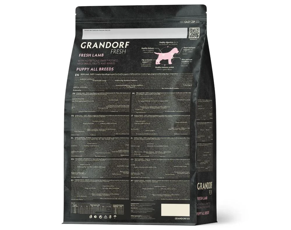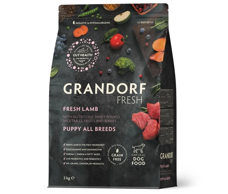Сухой беззерновой корм Grandorf Fresh на основе свежего мяса ягненка и батата разработан специально для щенков в период активного роста. Рацион содержит только натуральные и легко усваиваемые ингредиенты, которые помогают поддерживать здоровье пищеварительной системы и способствуют укреплению иммунитета. Сбалансированный состав обеспечивает все необходимые питательные вещества для здорового и активного роста щенка.