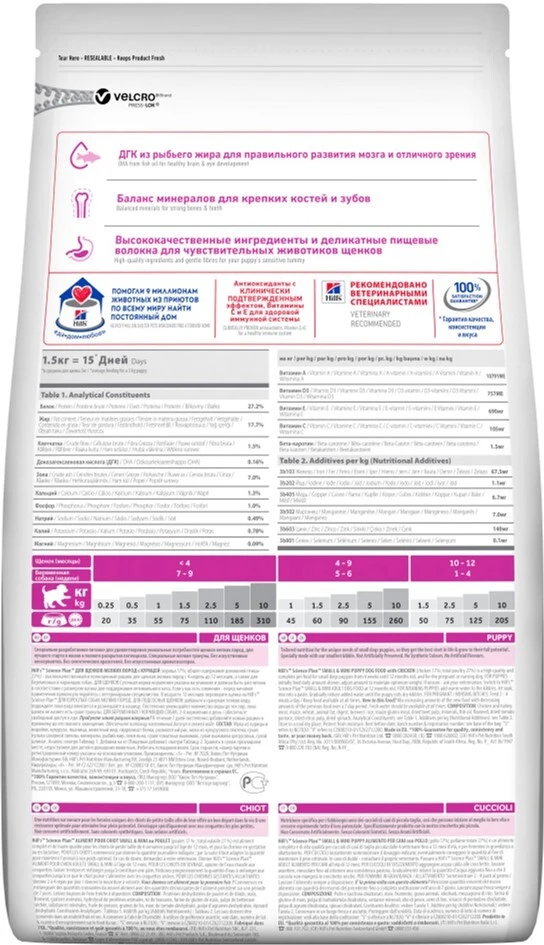 Рекомендации по кормлению: Сухой корм Hill's Science Plan Puppy Smal&Mini рекомендовано для щенков малых и миниатюрных пород в иком до 12 месяцев. В течение беременности или лактации собак малых и миниатюрных пород рекомендуется кормить кормом для щенков. Этот рацион укрепляет иммунитет и обеспечивает здоровый рост щенков, а также адаптирован к высоким потребностям энергии собак в период беременности и лактации.