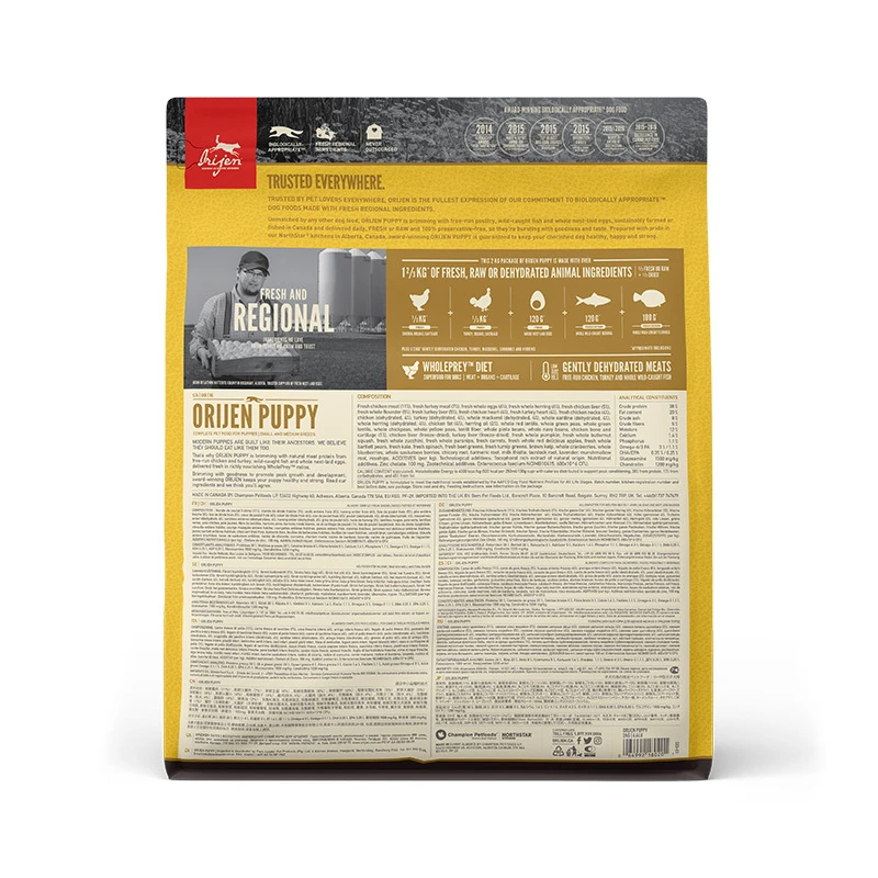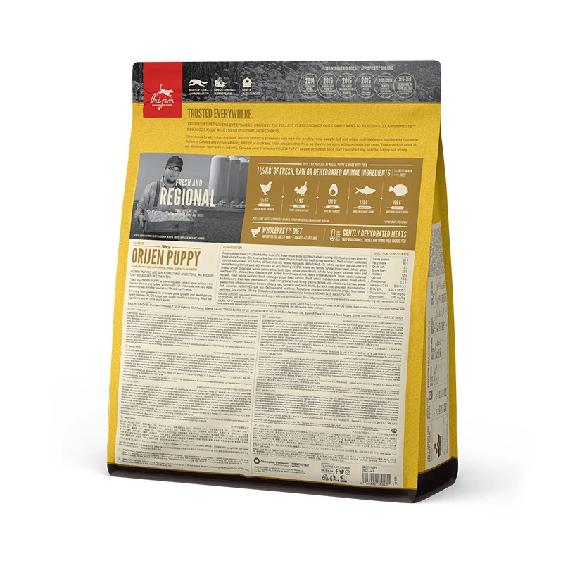 Корм ORIJEN Puppy создан в соответствии с уровнями питательности установленных AAFCO для профилей питательности кормов.