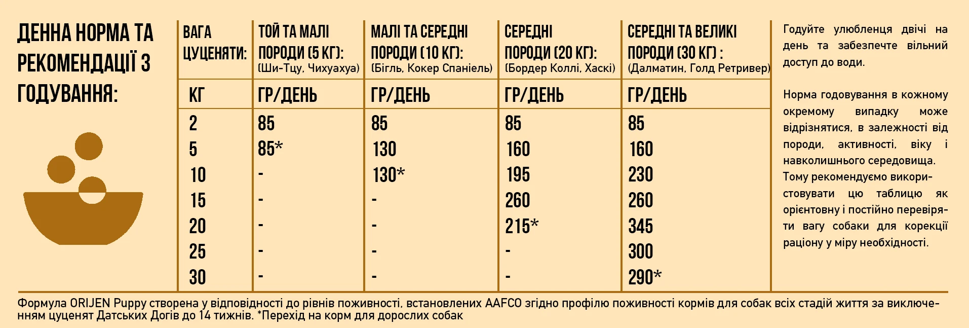 Вот почему Мы рекомендуем использовать эту таблицу как ориентировочную и постоянно проверять вес собаки для коррекции рациона по мере необходимости. Кормите собаку 2 раза в сутки и обеспечьте ей постоянный доступ к свежей питьевой воде.